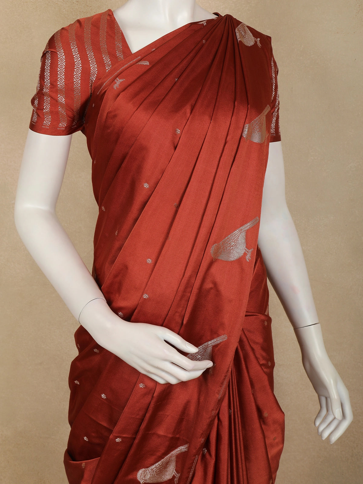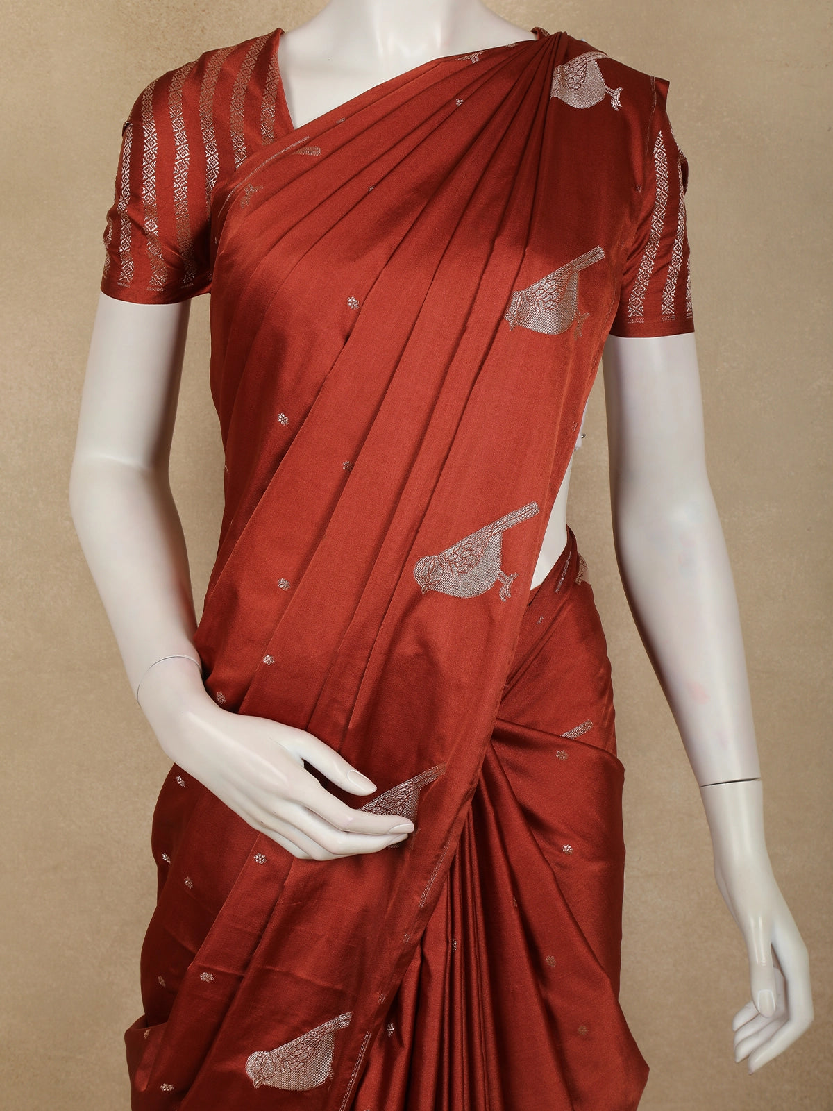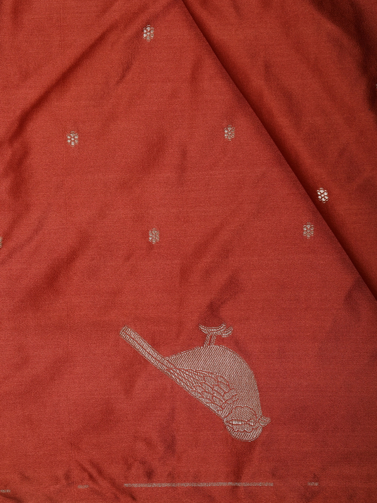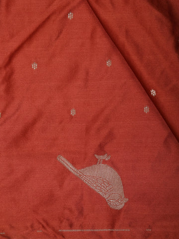 Rust Red Butta Zari Woven Design Pure Banarasi Silk Saree with Birds Motif Border