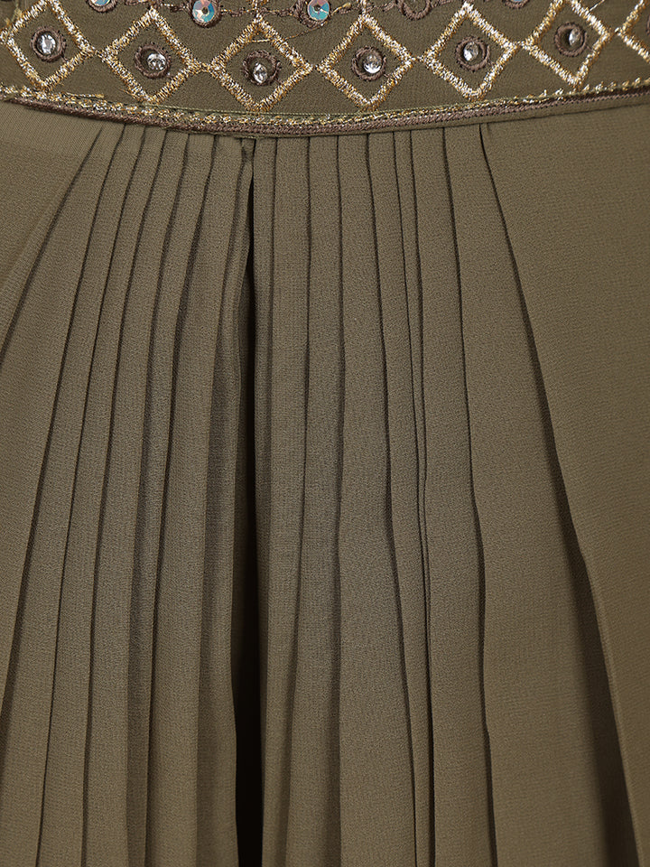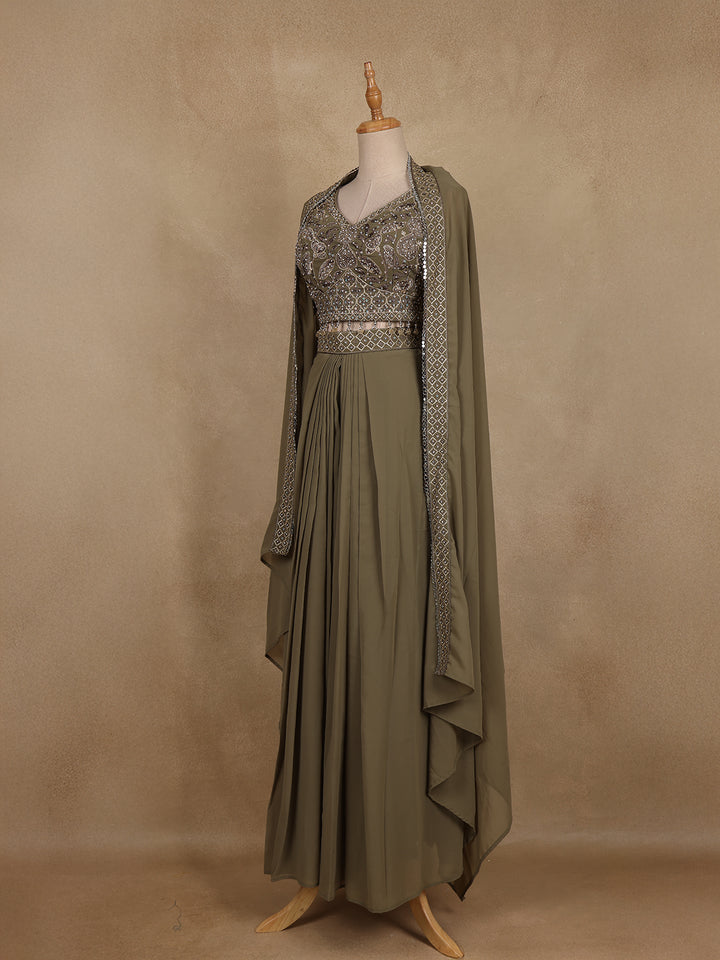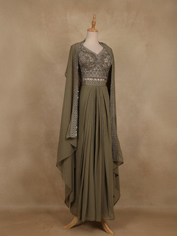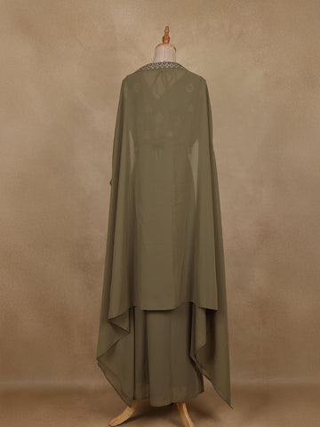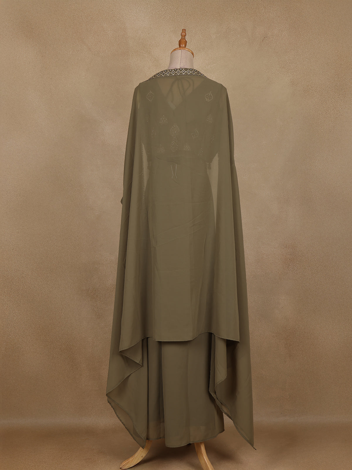 Sage Green Floral Embroidered Design Georgette Skirt Top with Dupatta