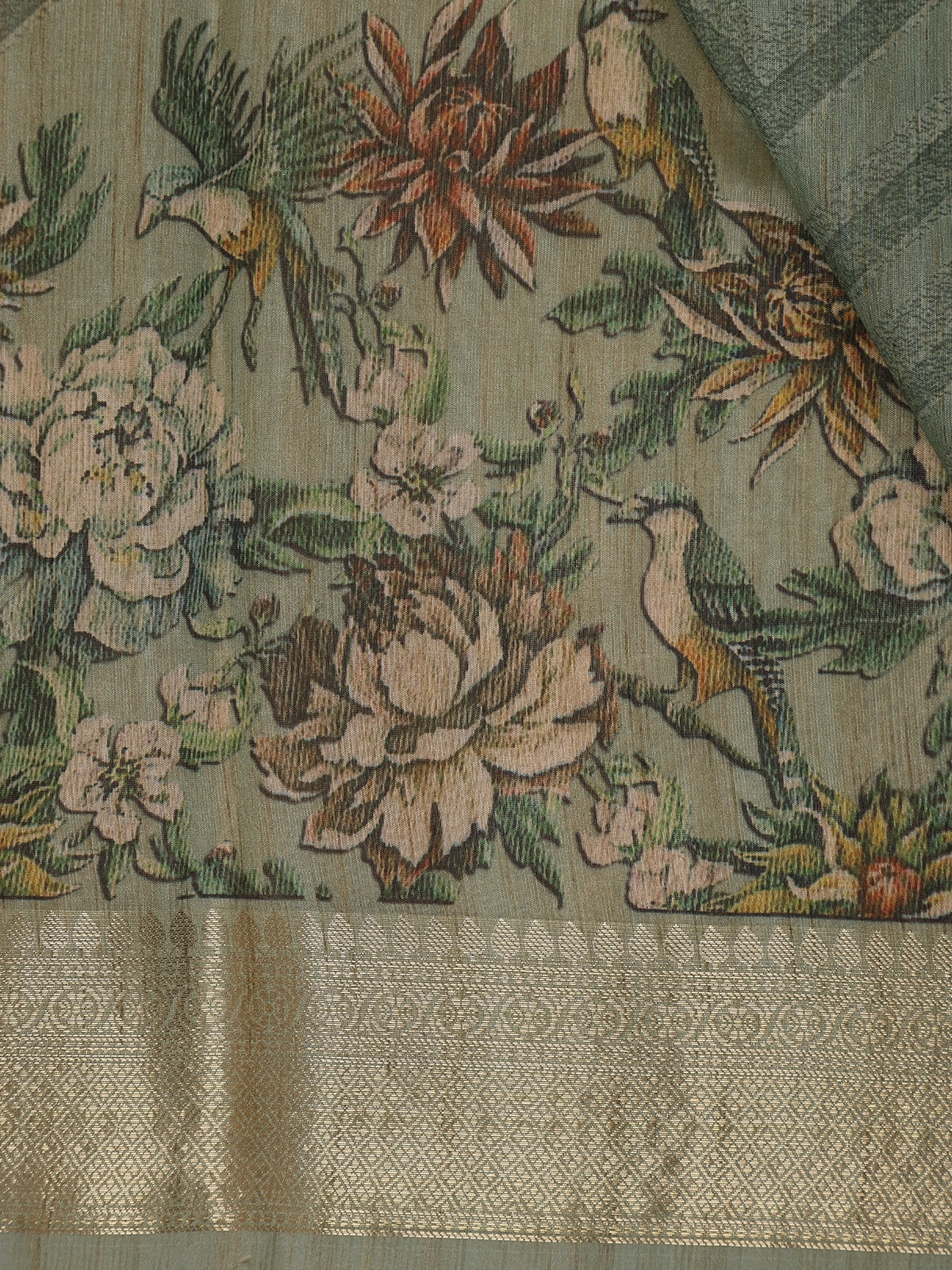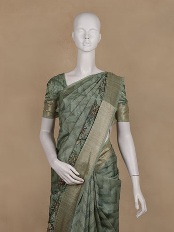 Crafted from fine Tussar silk, it radiates a natural luster and offers a comfortable, fluid drape — perfect for festive gatherings, elegant celebrations, or cultural occasions. The zari border and pallu lend a refined traditional touch, making it a versatile addition to your ethnic collection.