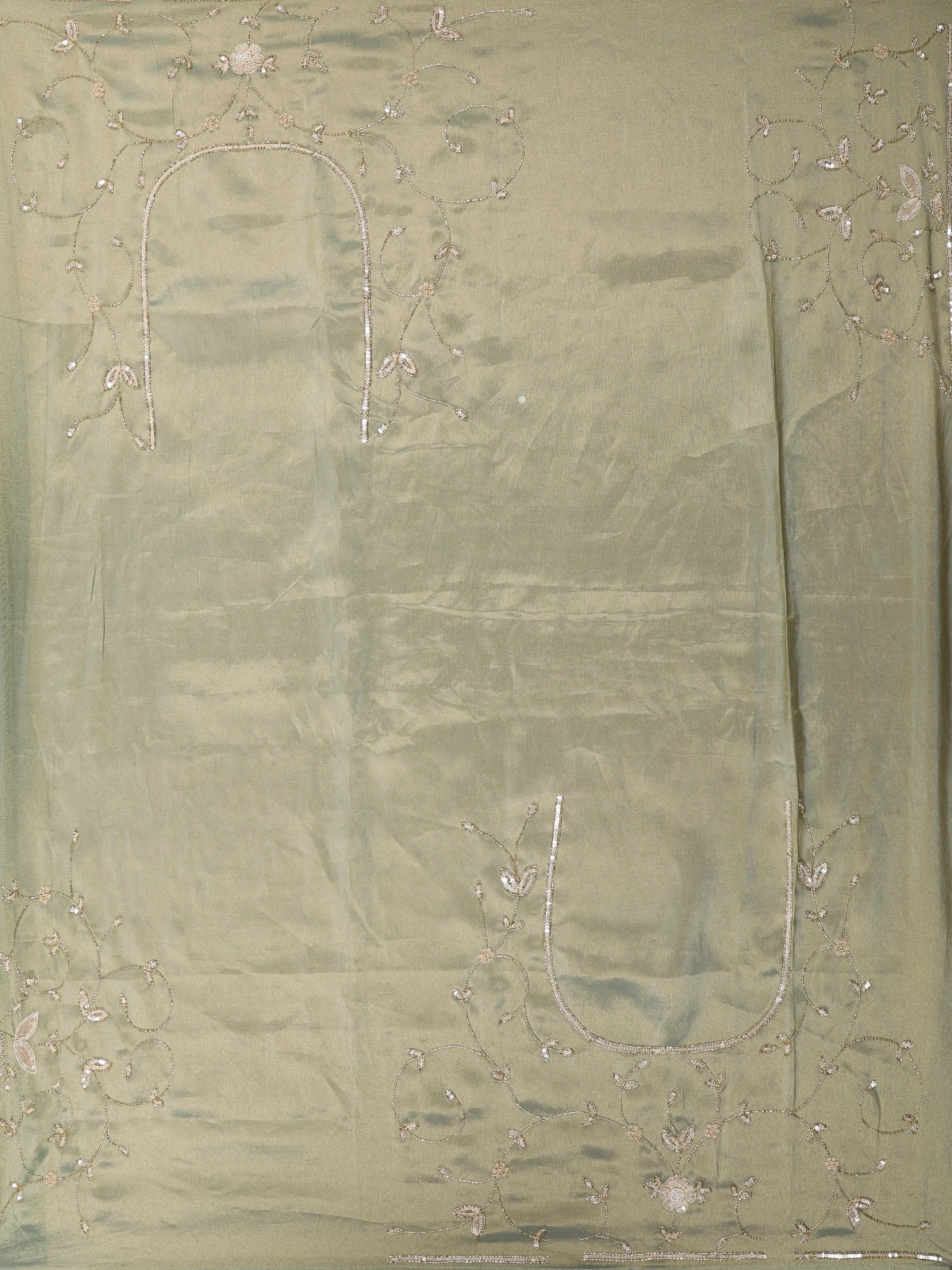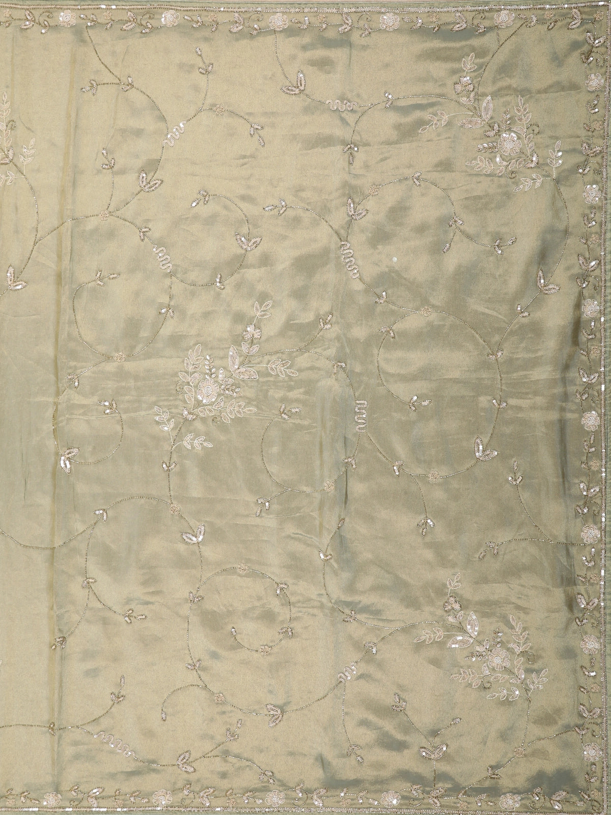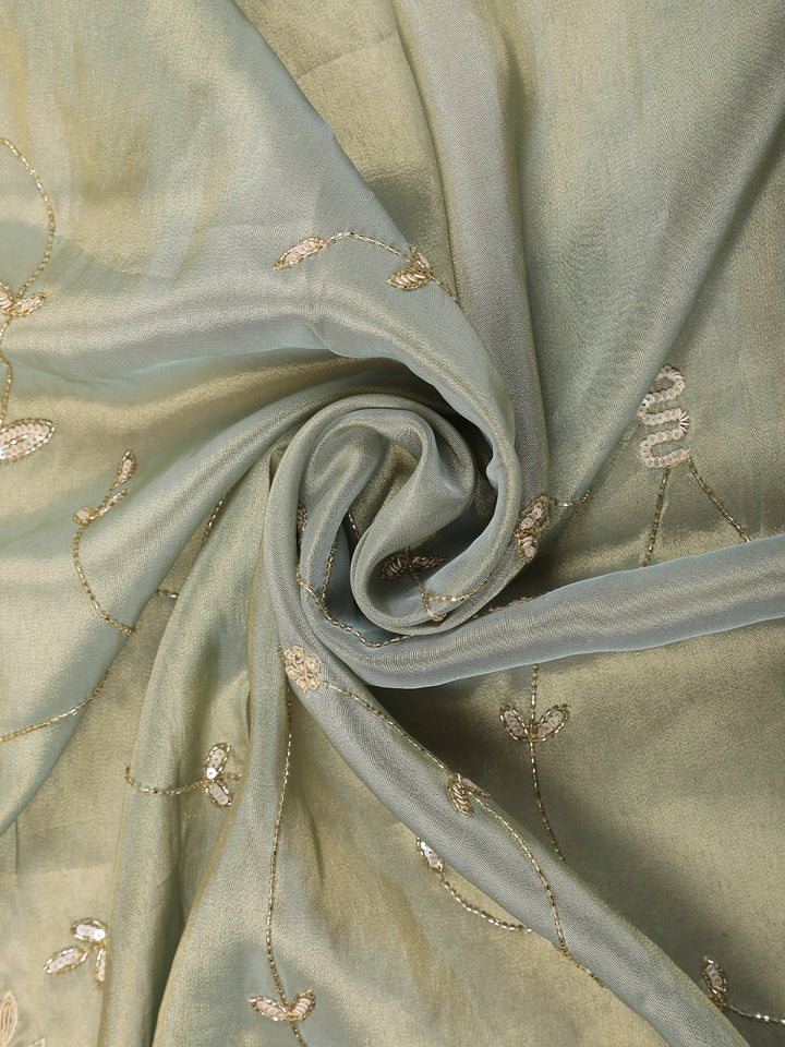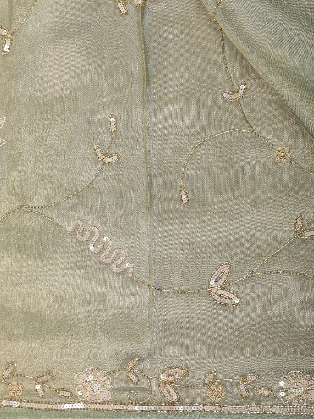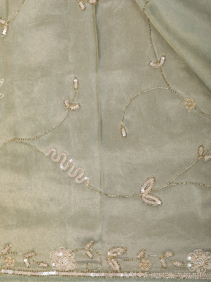 Sage Green Floral Sequins Embroidered Tissue Silk Saree with Designer Border