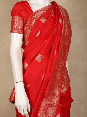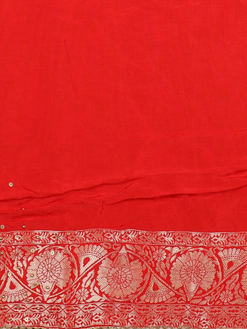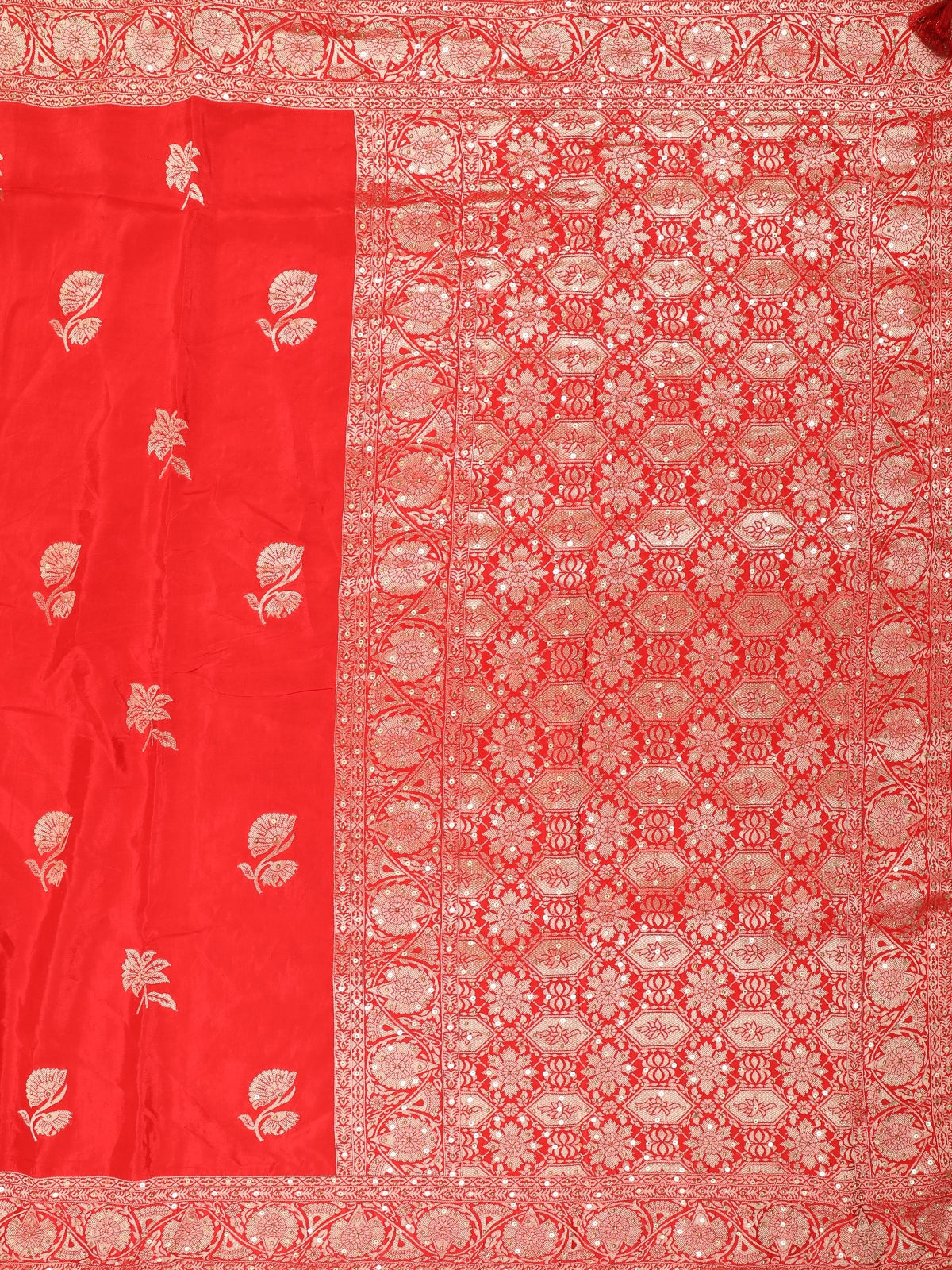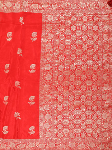 Scarlet Red Floral Zari Woven Banarasi Silk Saree with Designer Border