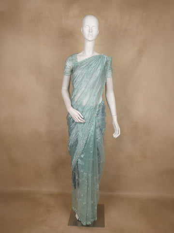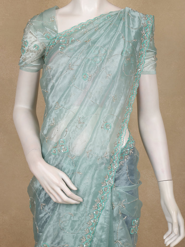 Shimmer with effortless grace in this Sea Blue Sequin Embroidered Design Organza Saree, a vision of delicate craftsmanship and refined elegance. Crafted from luxurious organza fabric, this saree features exquisite sequin embroidery that lends a soft, glistening charm to its sheer, lightweight texture. The sea blue hue exudes a tranquil sophistication, making it a perfect choice for cocktail evenings, festive gatherings, and elegant celebrations.