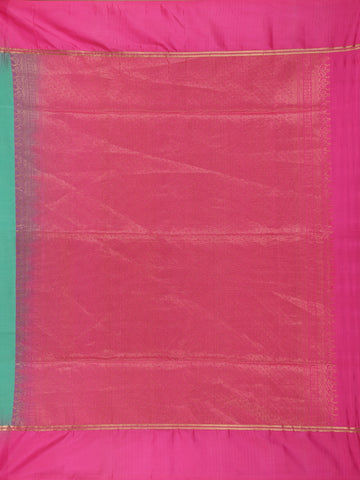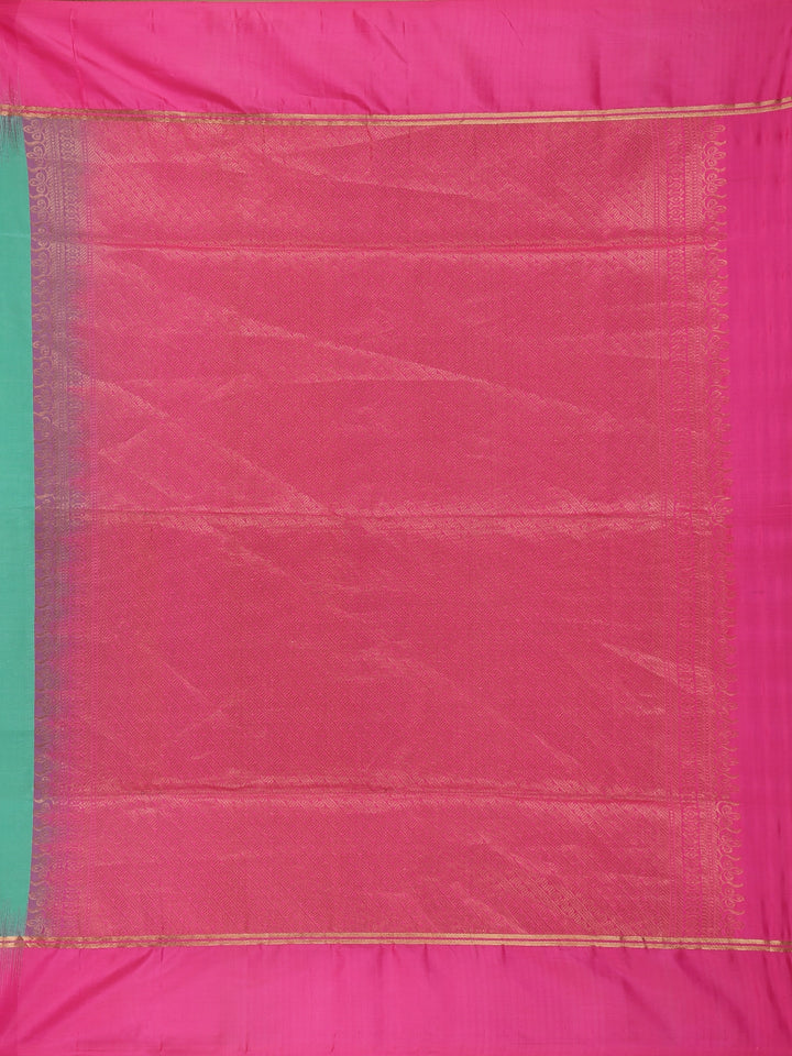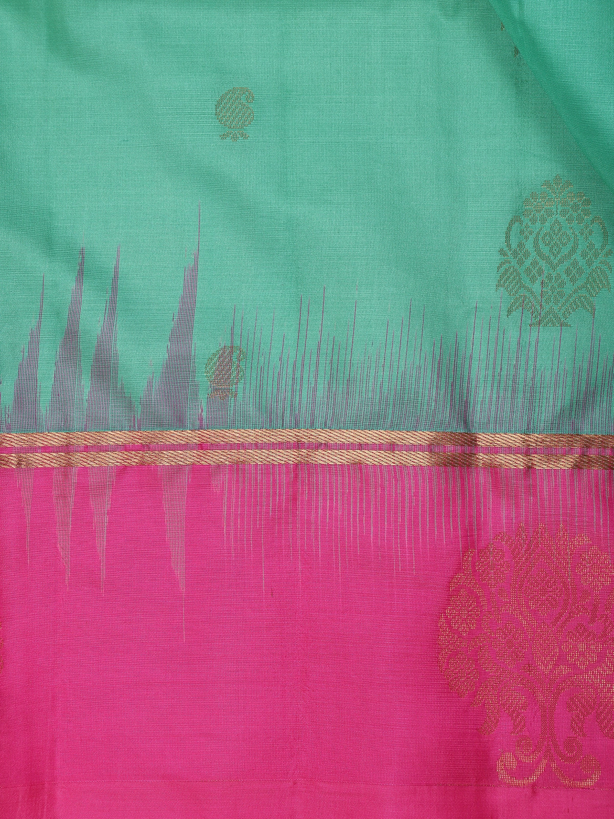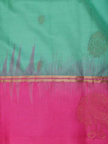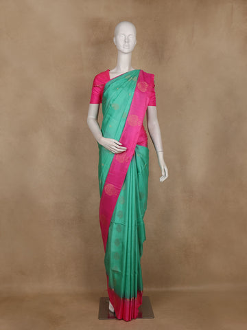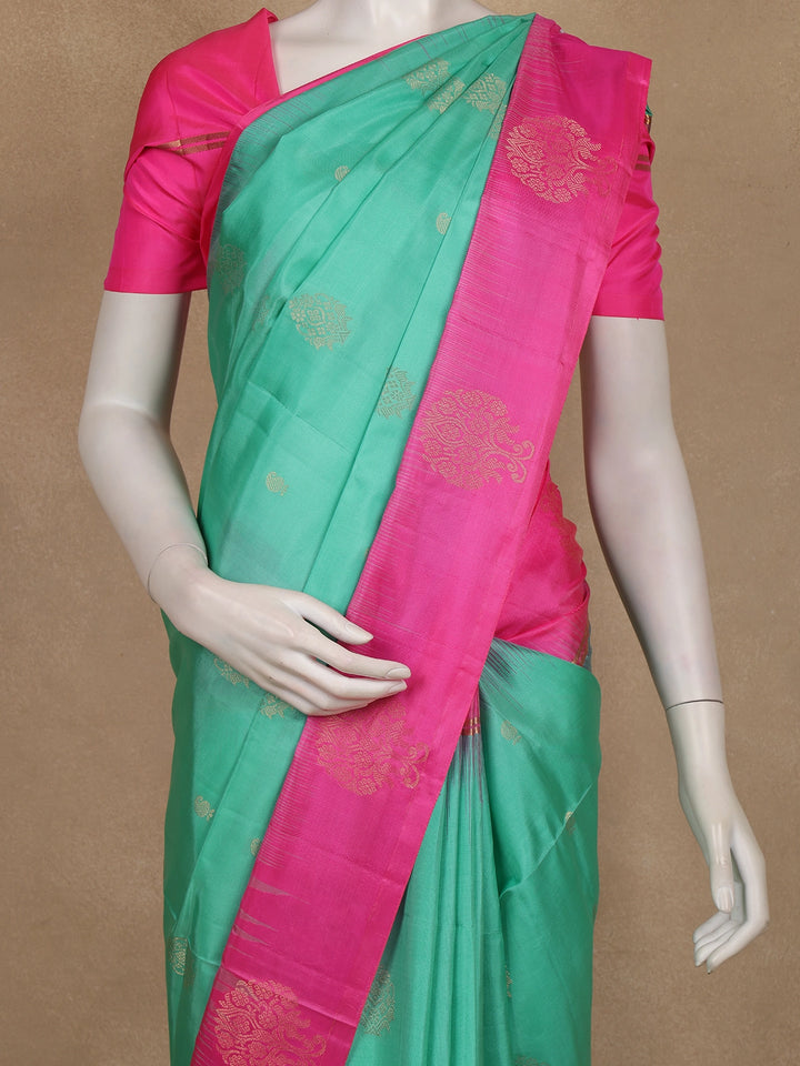 Sea Green Butta Woven Soft Silk Saree with Contrast Pink Border
