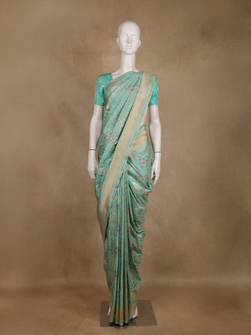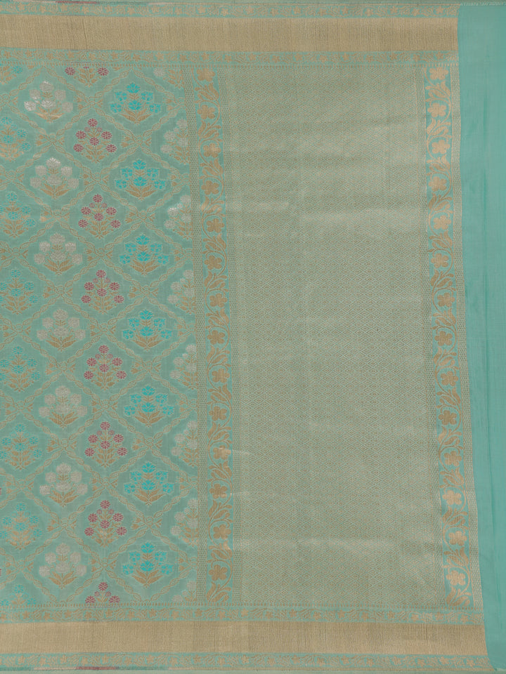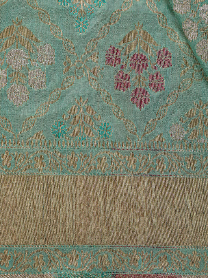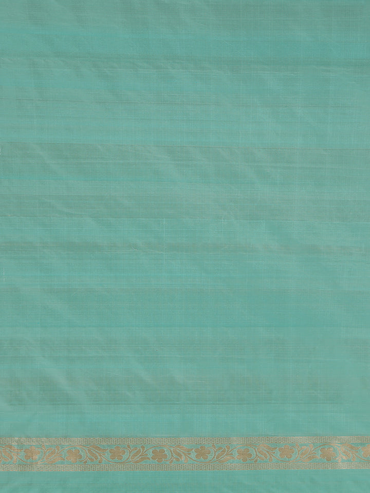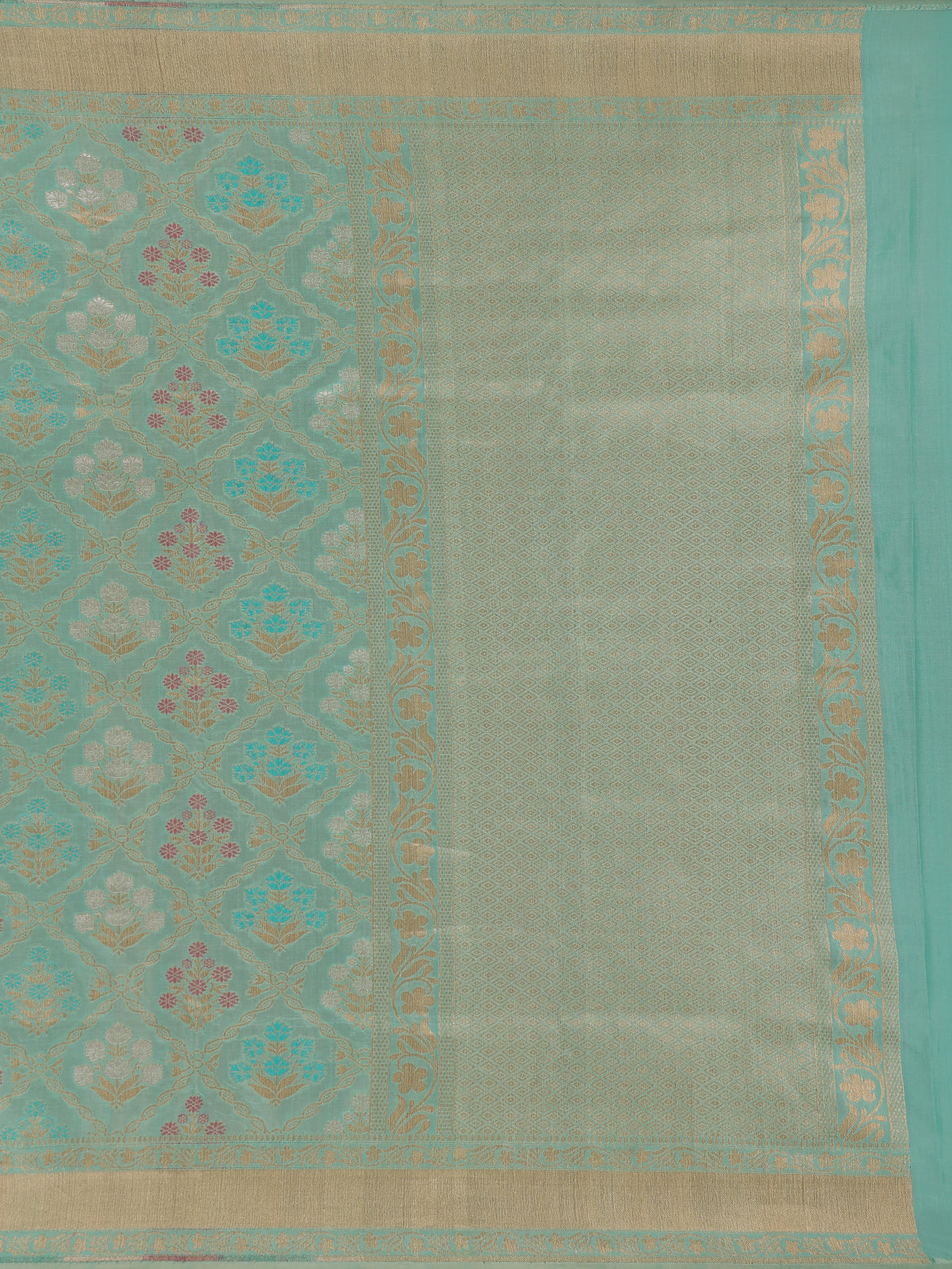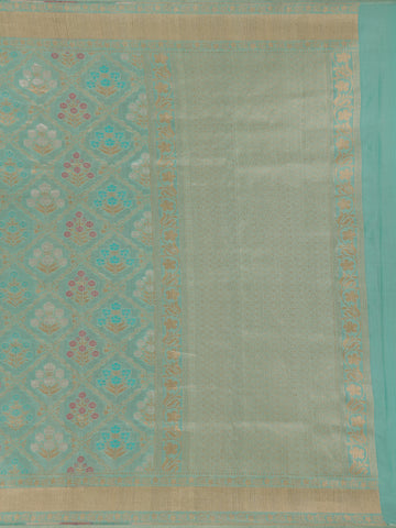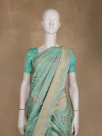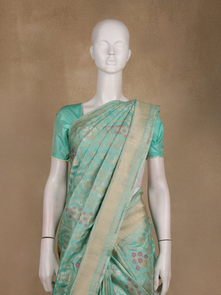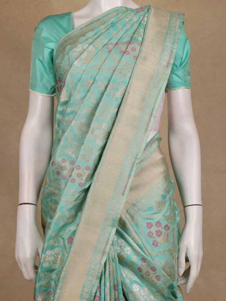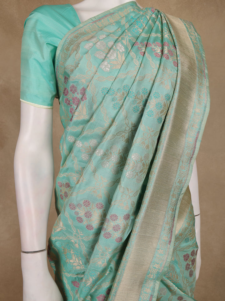 Sea Green Floral Butta Woven Banarasi Silk Saree With Zari Border