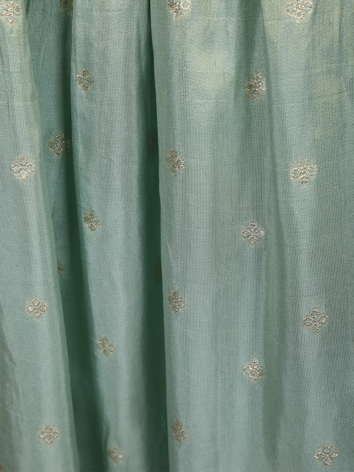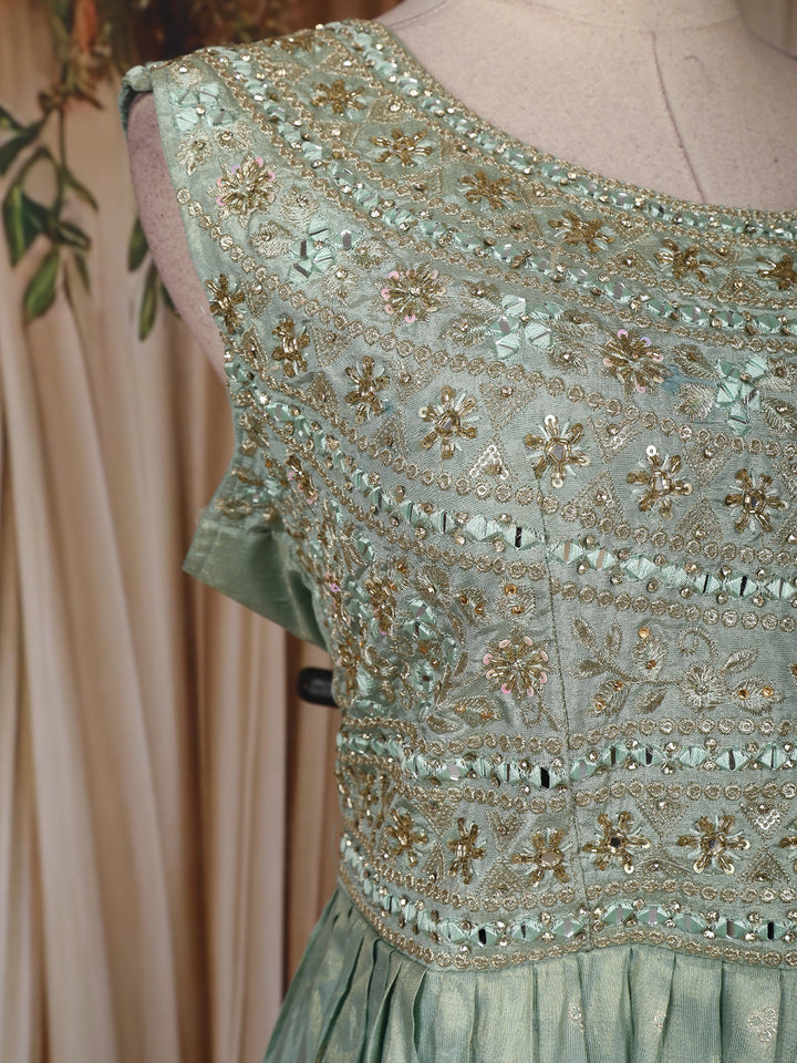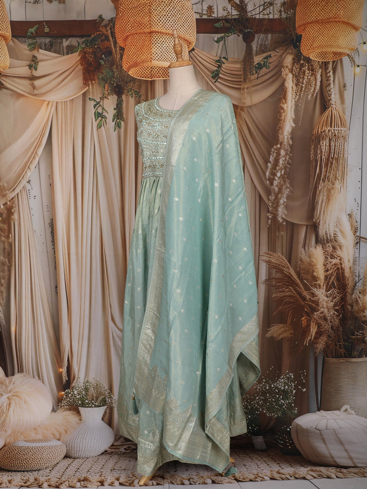 Sea Green Floral Embroidered Design Silk Gown with Dupatta