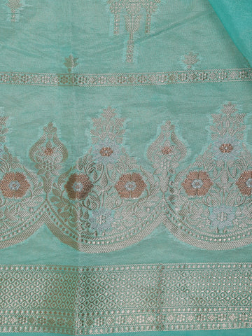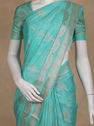 Sea Green Floral Motif Design Semi Banarasi Silk Saree