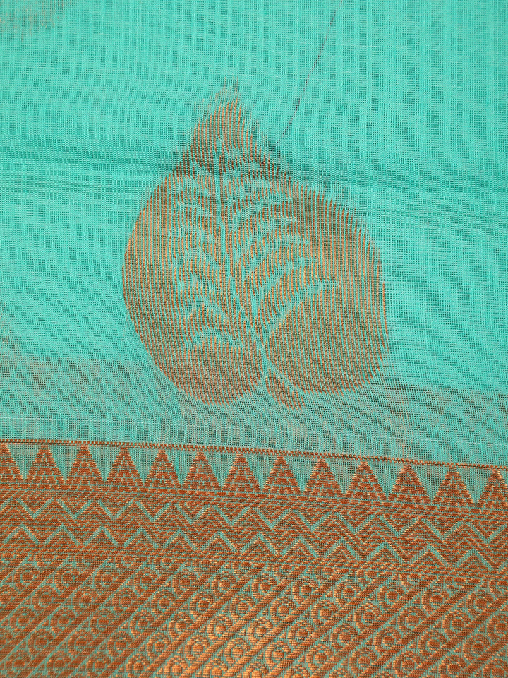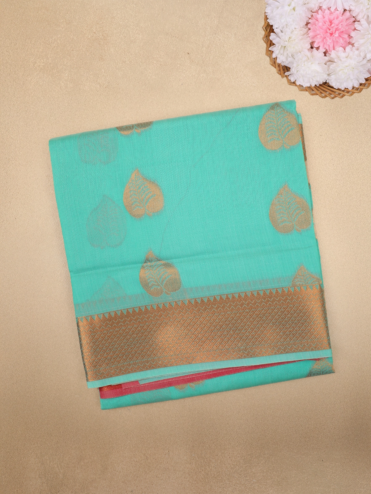 Sea Green Leaf Butta Design Silk Cotton Saree with Contrast Zari Border