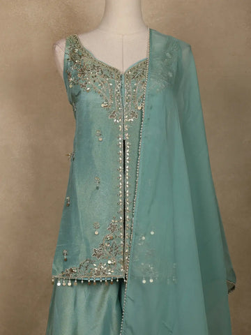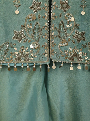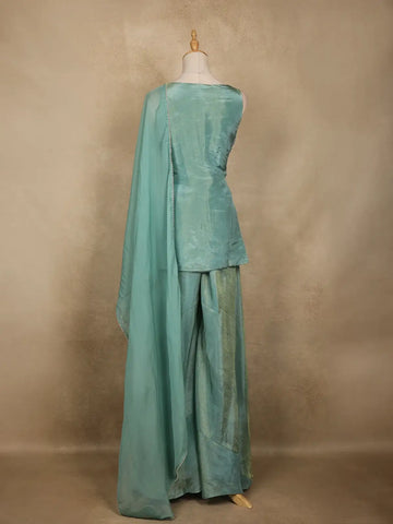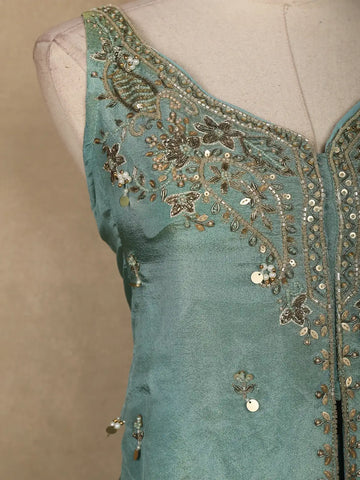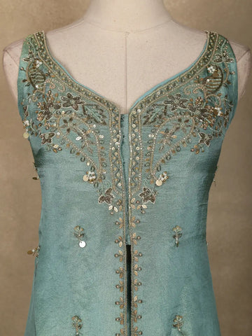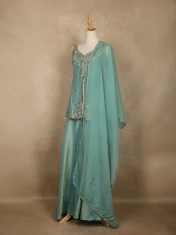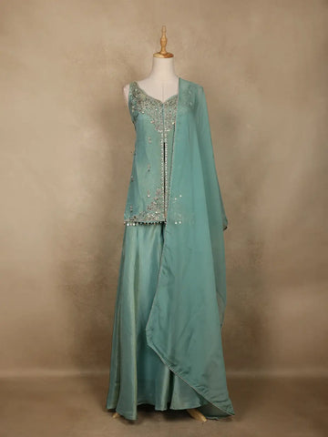 Sea Green Sequin Embroidery Design Silk Palazzo Suit