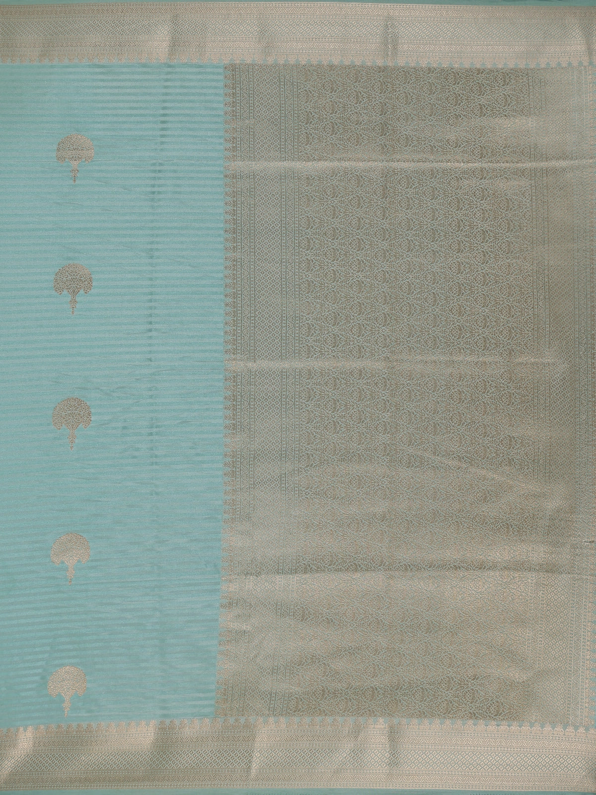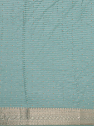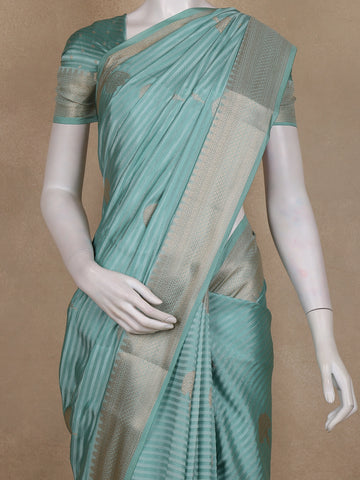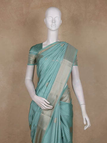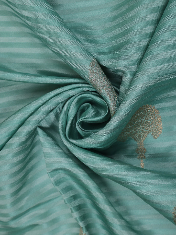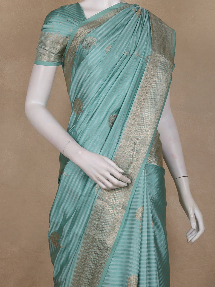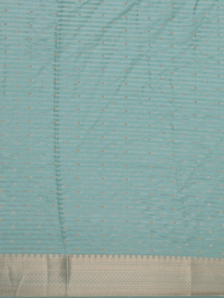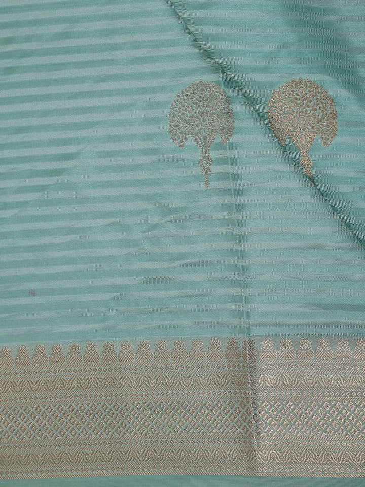 Sea Green Striped Butta Design Semi Banarasi Saree