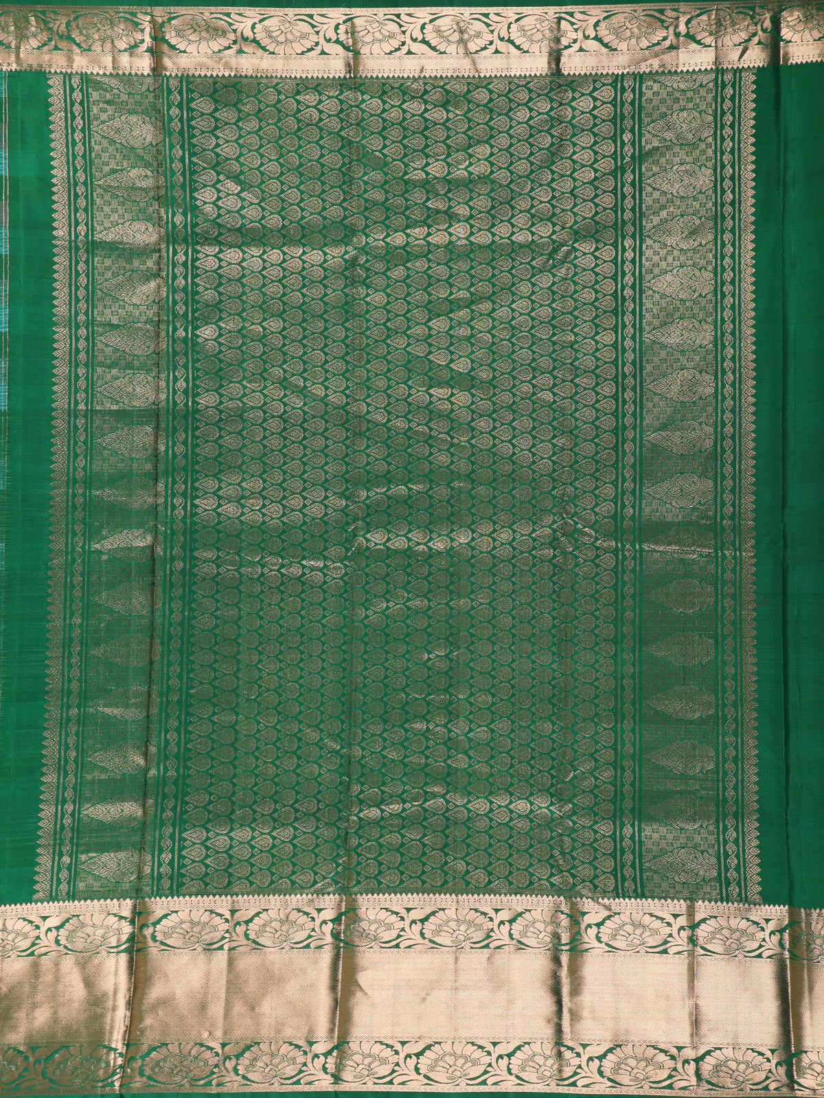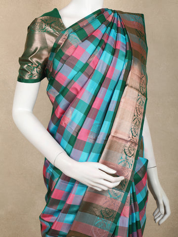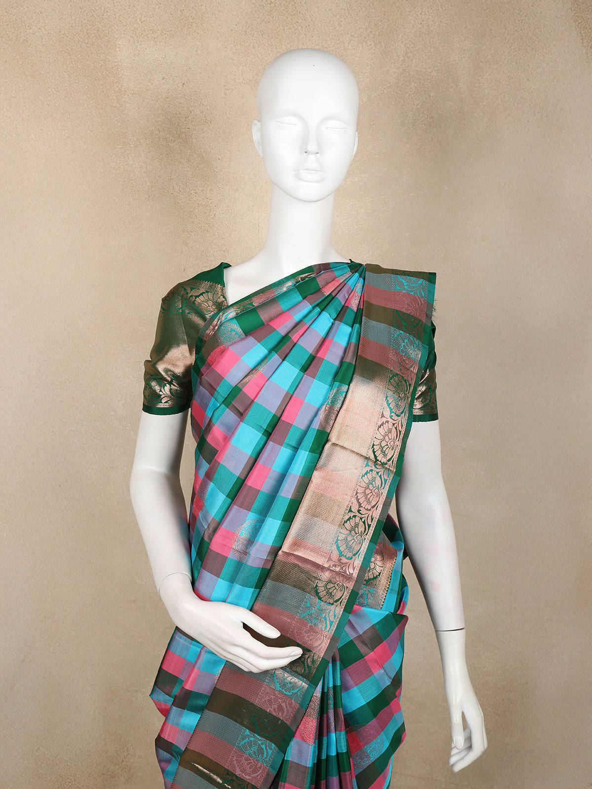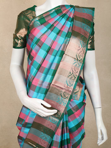 Sky Blue Checked Woven Pure Kanchipuram Silk Saree
