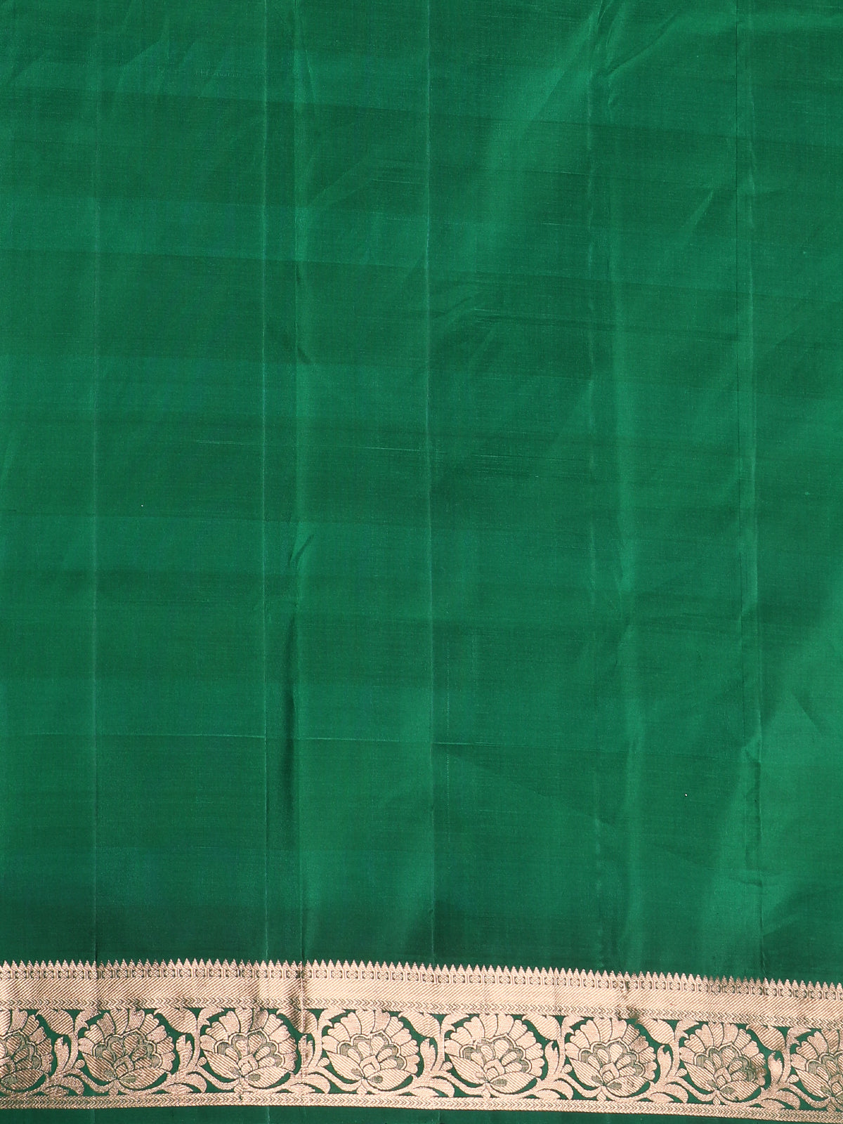 The woven checks throughout the body add a sophisticated geometric charm, while the finely crafted zari border and pallu elevate the ensemble with festive richness. A perfect blend of heritage and style for bridesmaids, wedding guests, and auspicious celebrations.