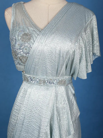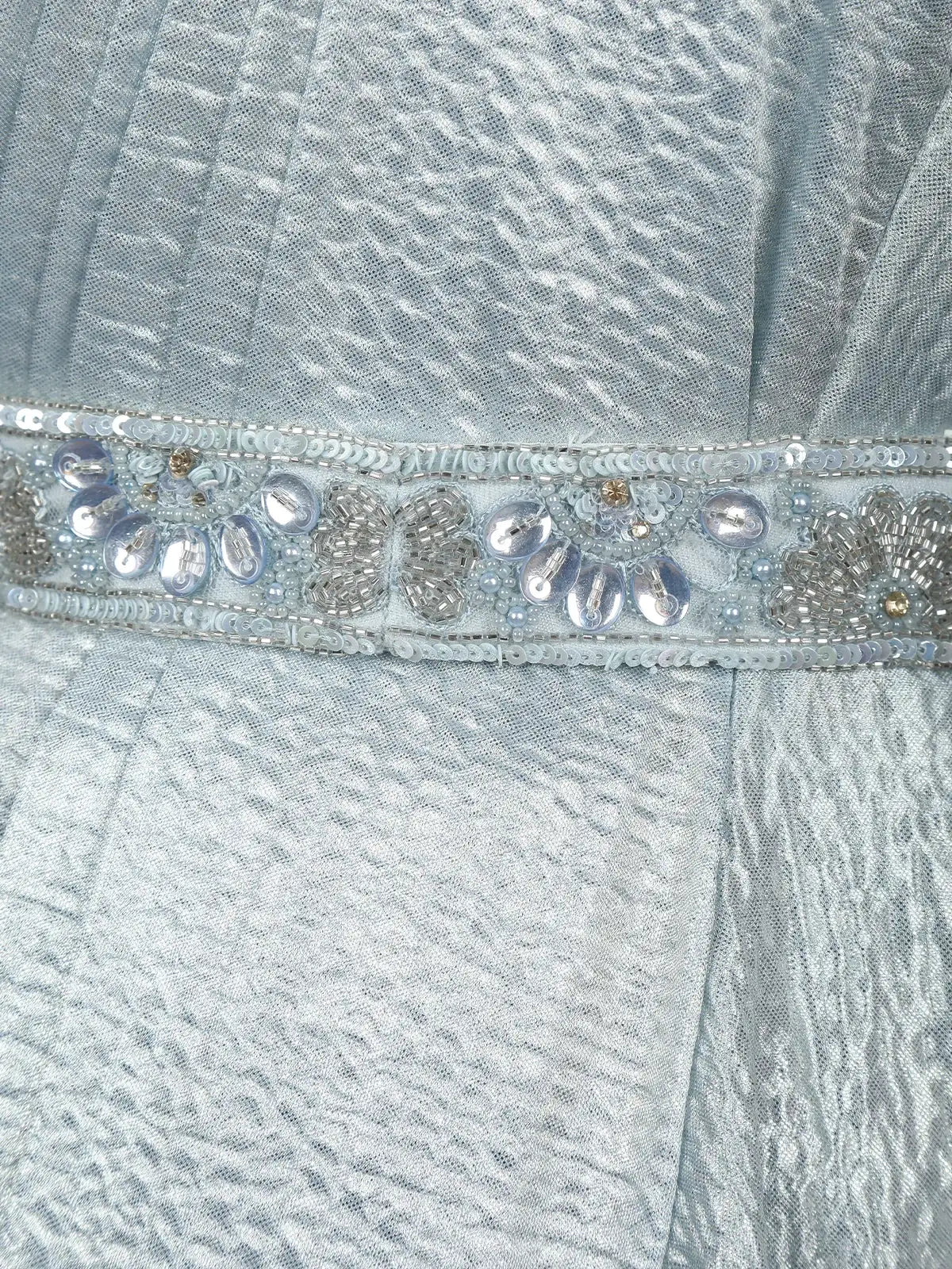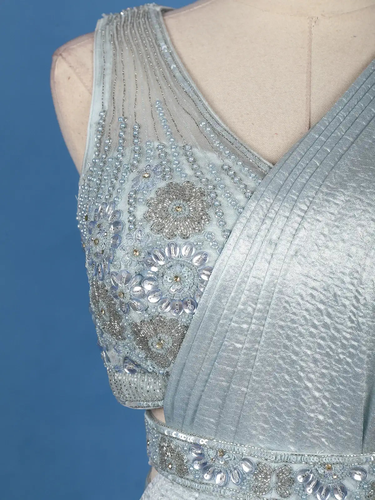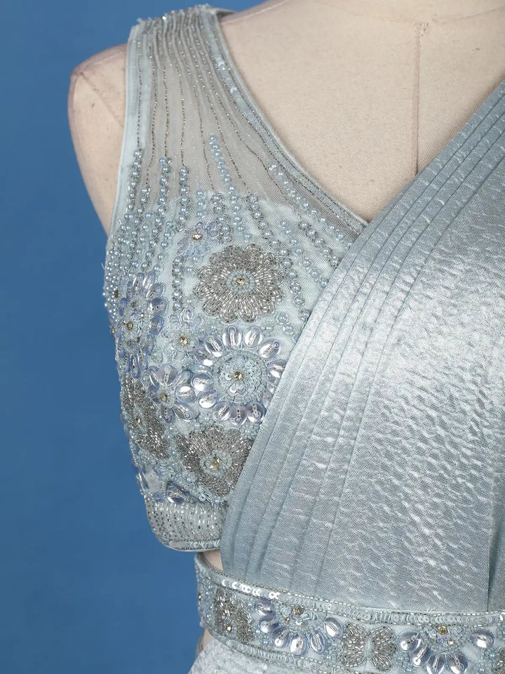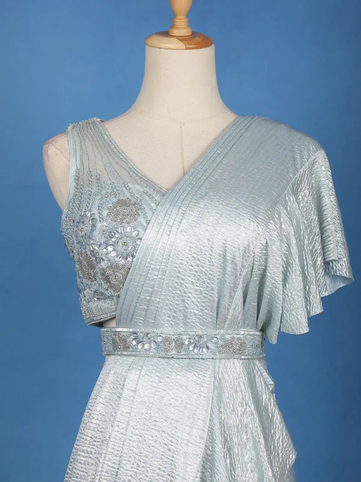 Sky Blue Floral Bead And Sequins Embroidered Shimmer Ready To Wear Saree