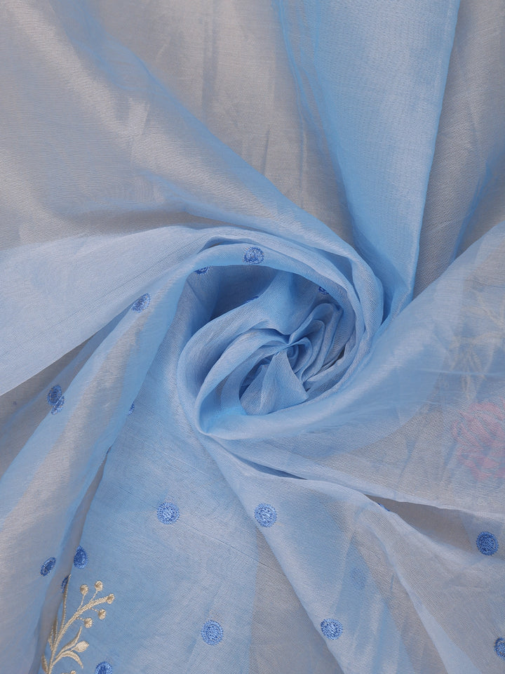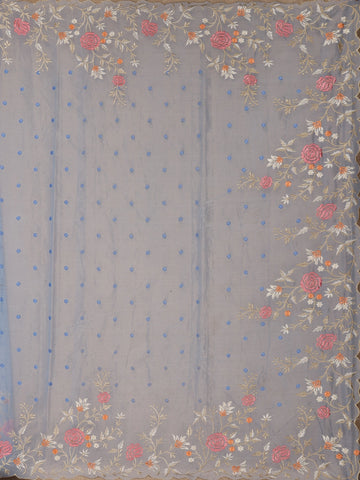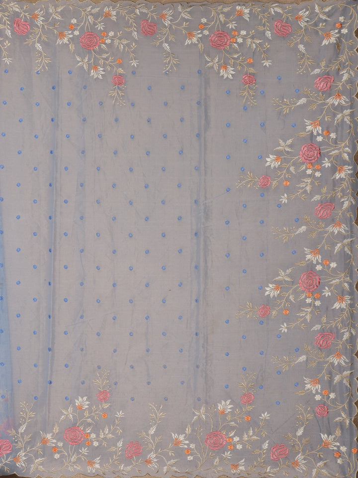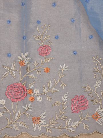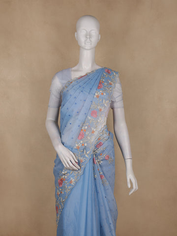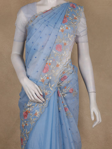 Sky Blue Floral Embroidered Semi Organza Saree