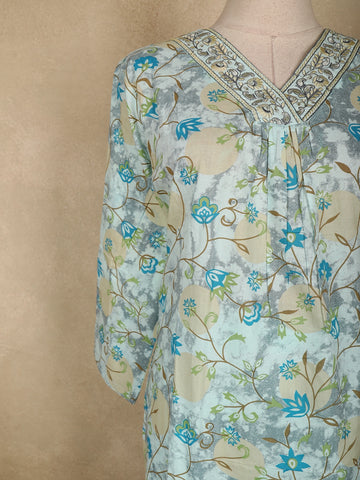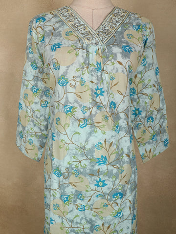 Paired with a matching printed dupatta, adorned with coordinated motifs and contrast border detailing, this ensemble completes the look with refined elegance. Soft, lightweight, and easy to drape, the dupatta adds a graceful flow and elevates the overall aesthetic.