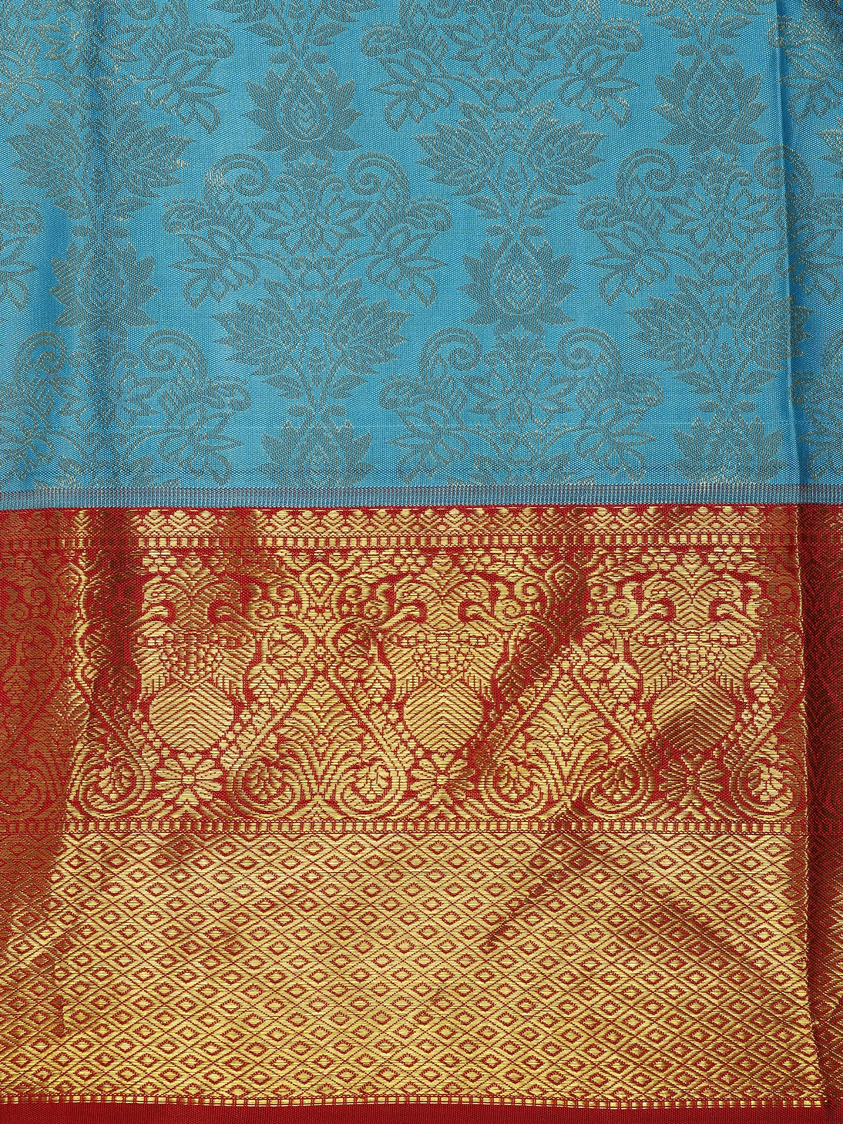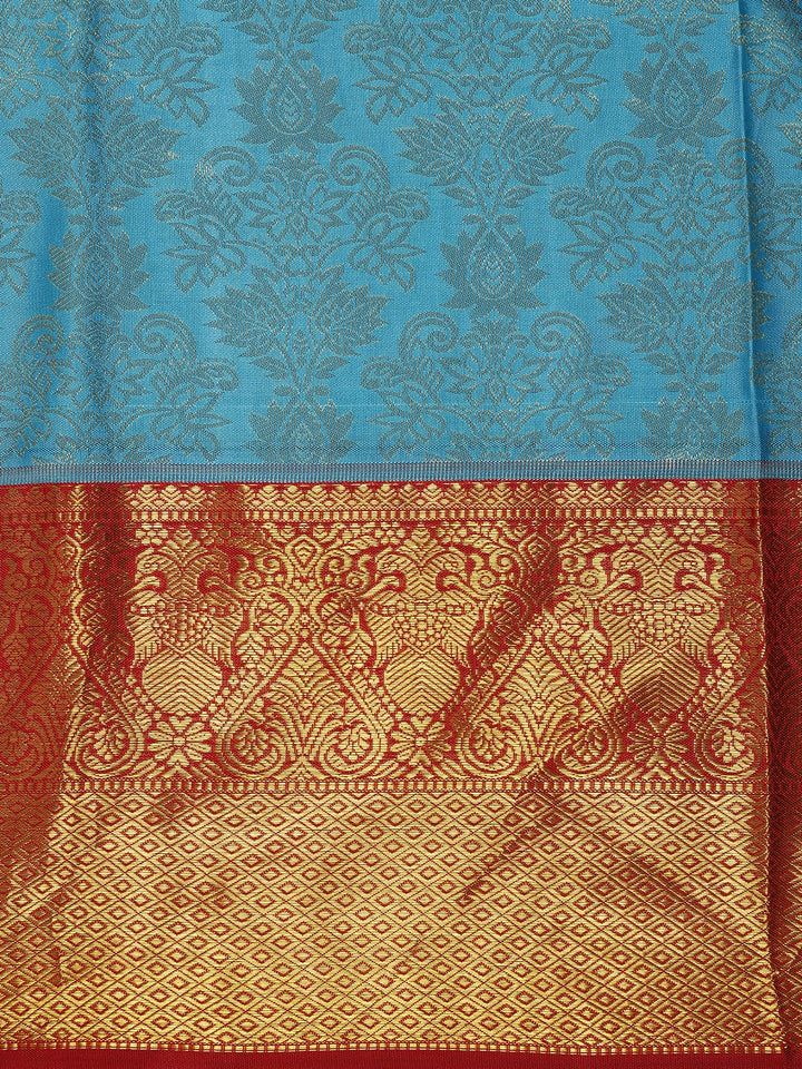 Sky Blue Floral Woven Design Kanchipuram Silk Saree