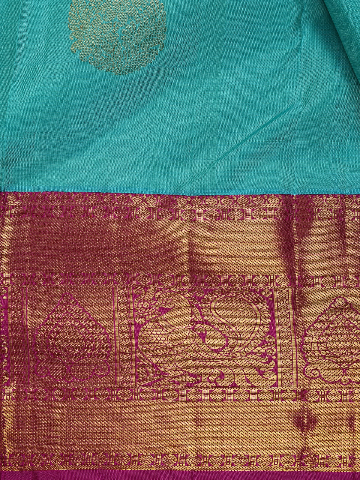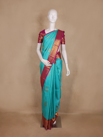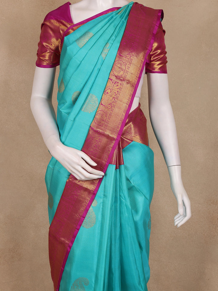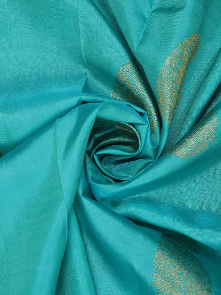 Sky Blue Paisley Butta Woven Kanchipuram Silk Saree