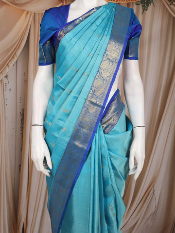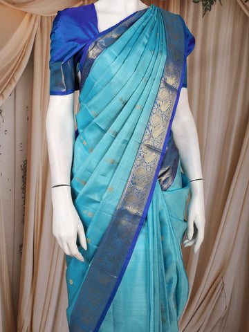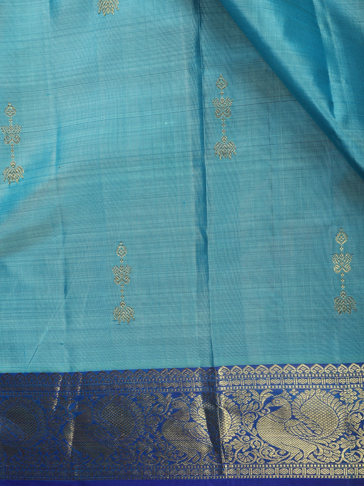 Sky Blue Zari Woven Design Pure Kanchipuram Silk Saree with Contrast Woven Border