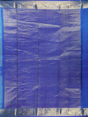 The contrast royal blue border and pallu, intricately woven with rich zari patterns, elevate the saree’s beauty and add a touch of opulence. The smooth texture of pure Kanchipuram silk ensures a flawless drape, offering both comfort and sophistication. Perfect for weddings, festive occasions, or temple functions, this saree beautifully blends heritage craftsmanship with modern elegance.