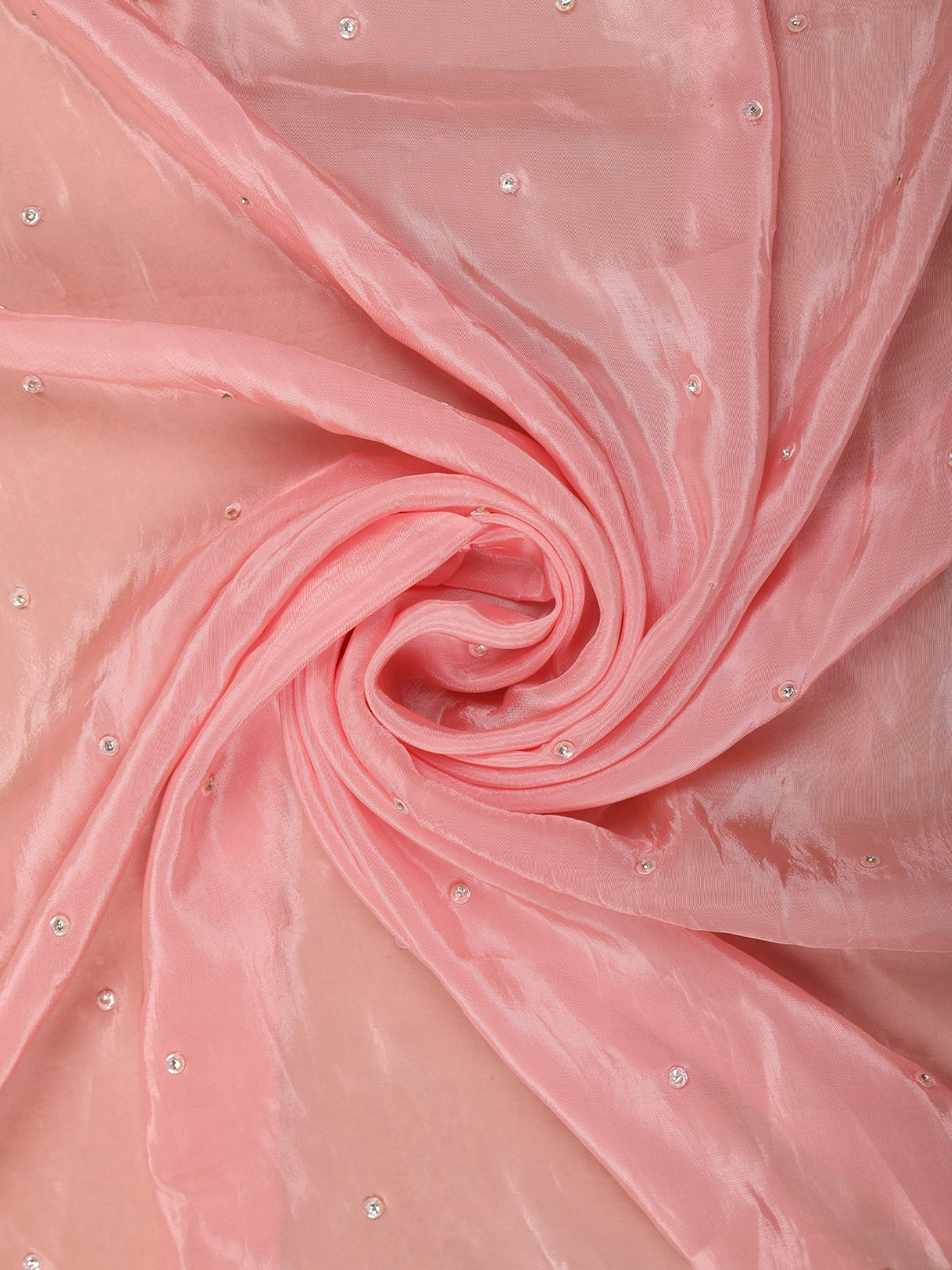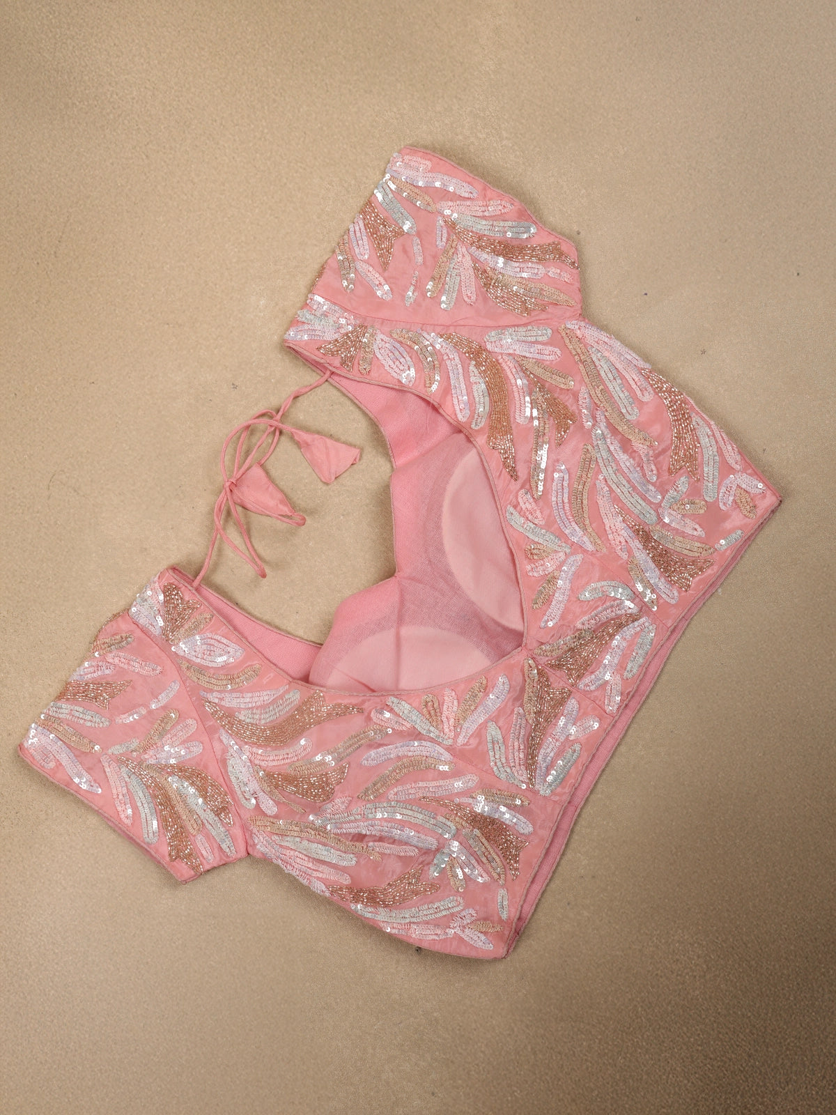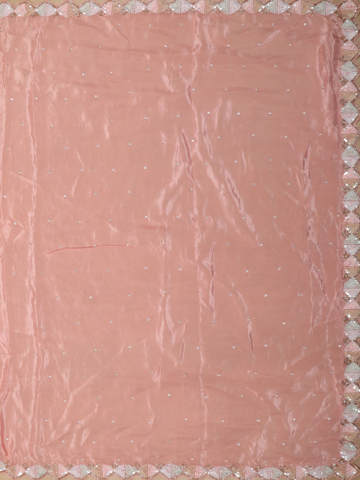 Soft Blush Peach Pink Heavy Sequins and Beads Embroidered Design Satin Saree with Matching Blouse
