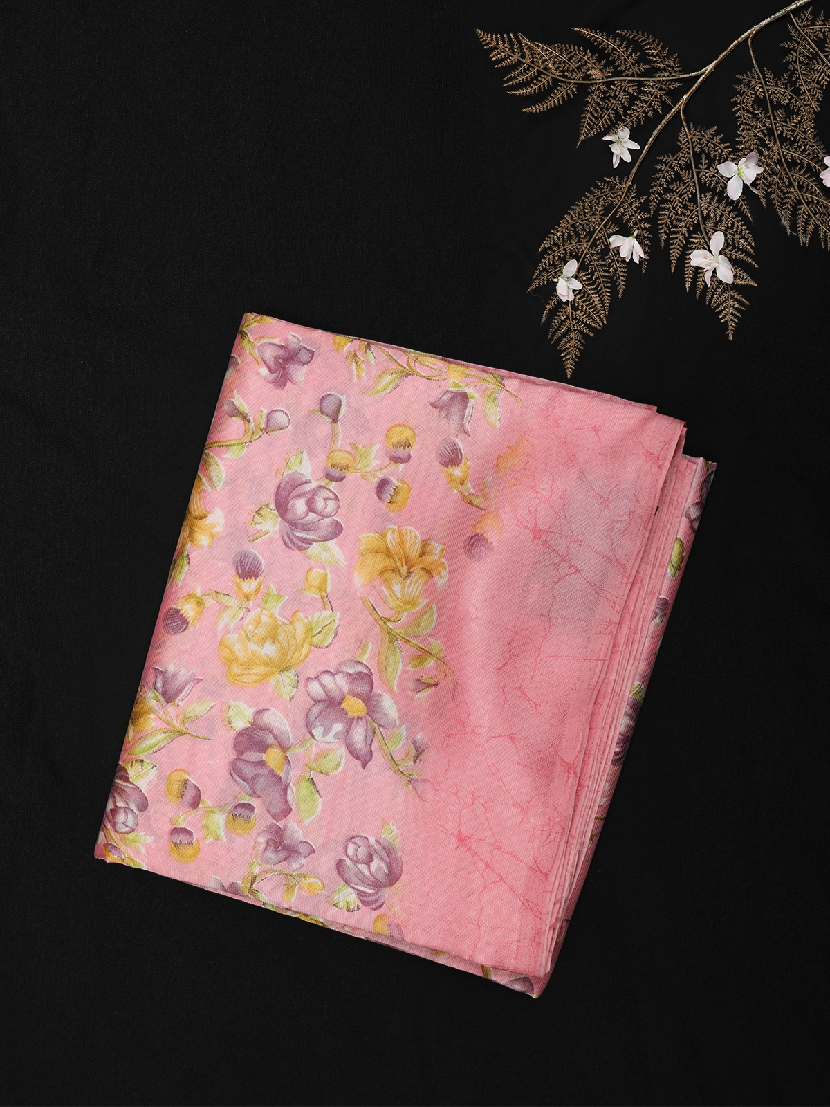 Elegant yet playful, this saree pairs beautifully with simple blouses and minimal accessories, allowing the vibrant colour and floral detailing to take center stage. A timeless pick for those who love soft florals with a modern, wearable charm.
