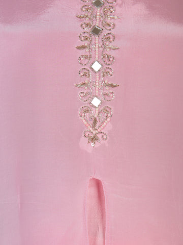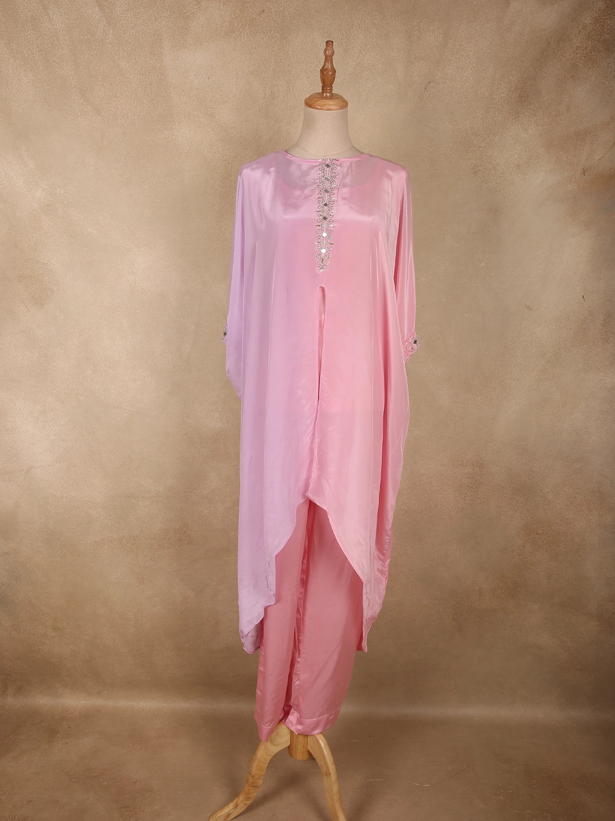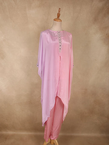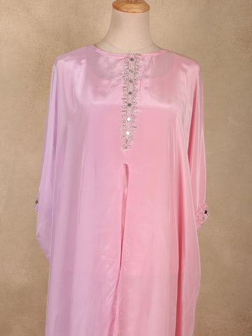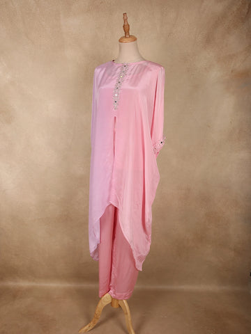 Soft Blush Pink Solid Design Soft Satin Indo Western Kaftan Set