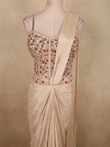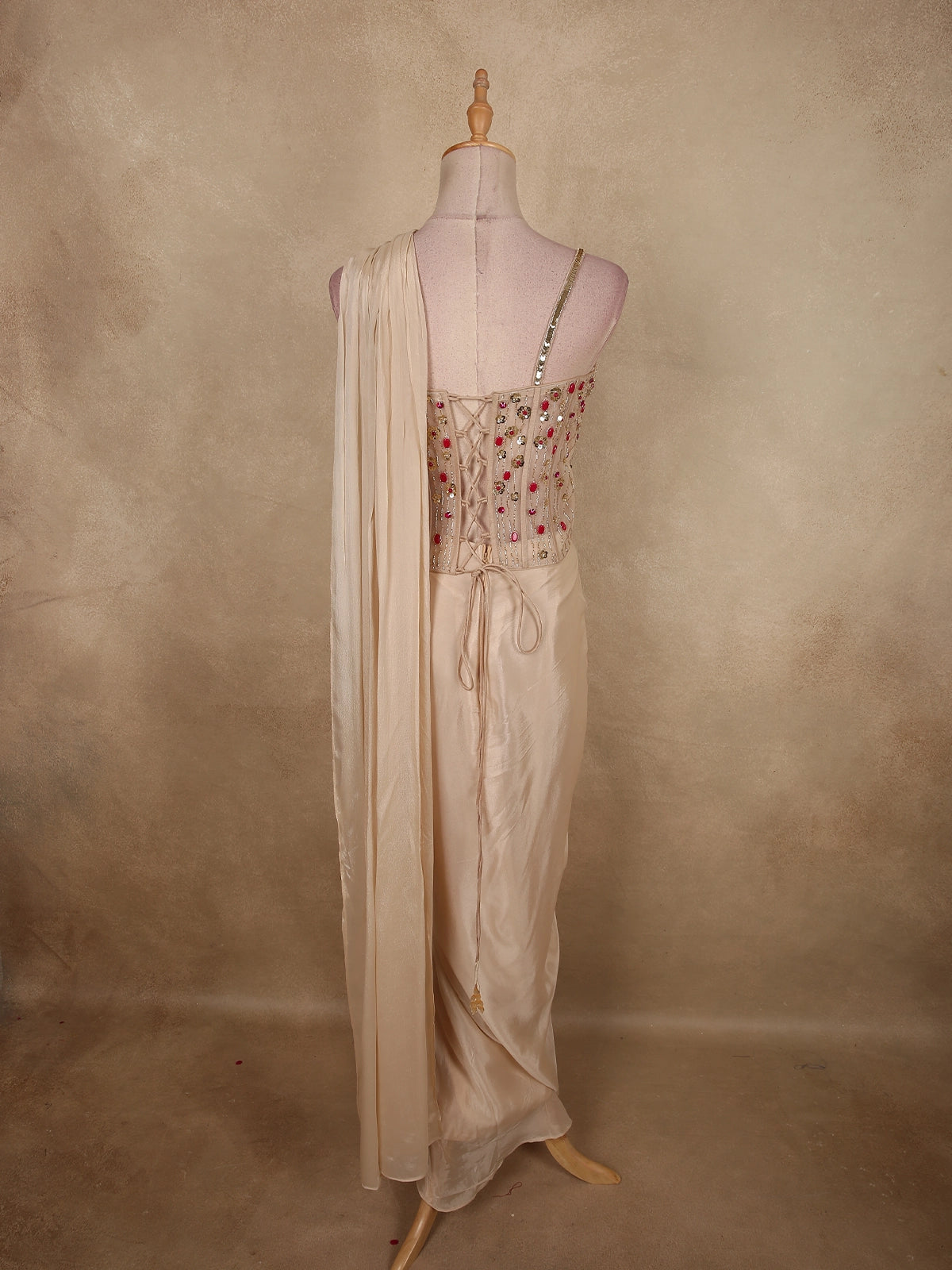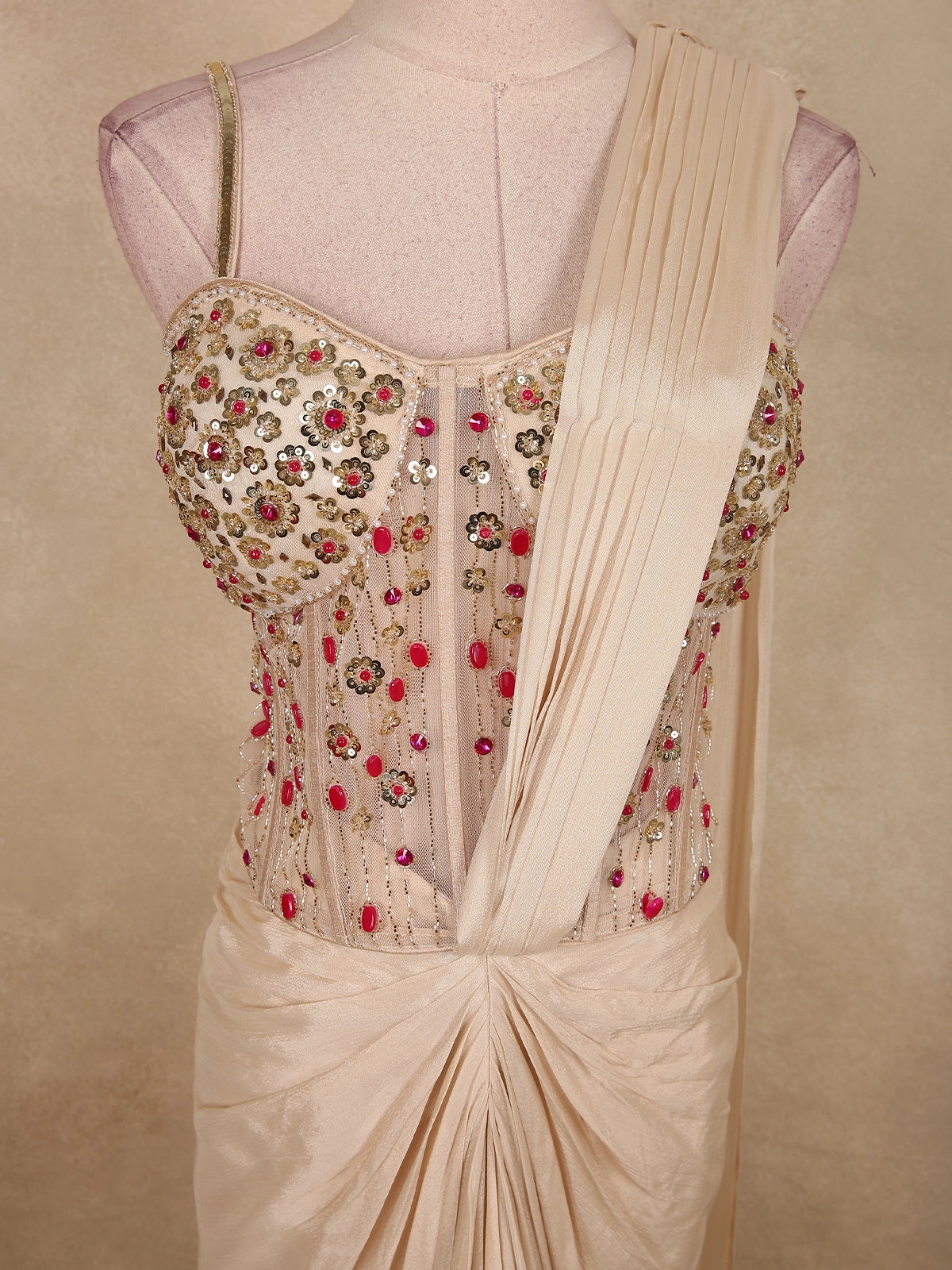 Sophisticated, luminous, and effortlessly chic, this champagne beige ensemble is designed for the woman who loves understated glamour with a touch of sparkle.