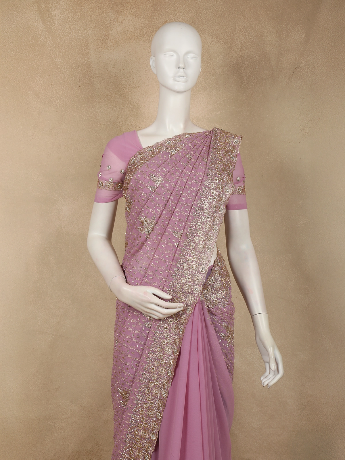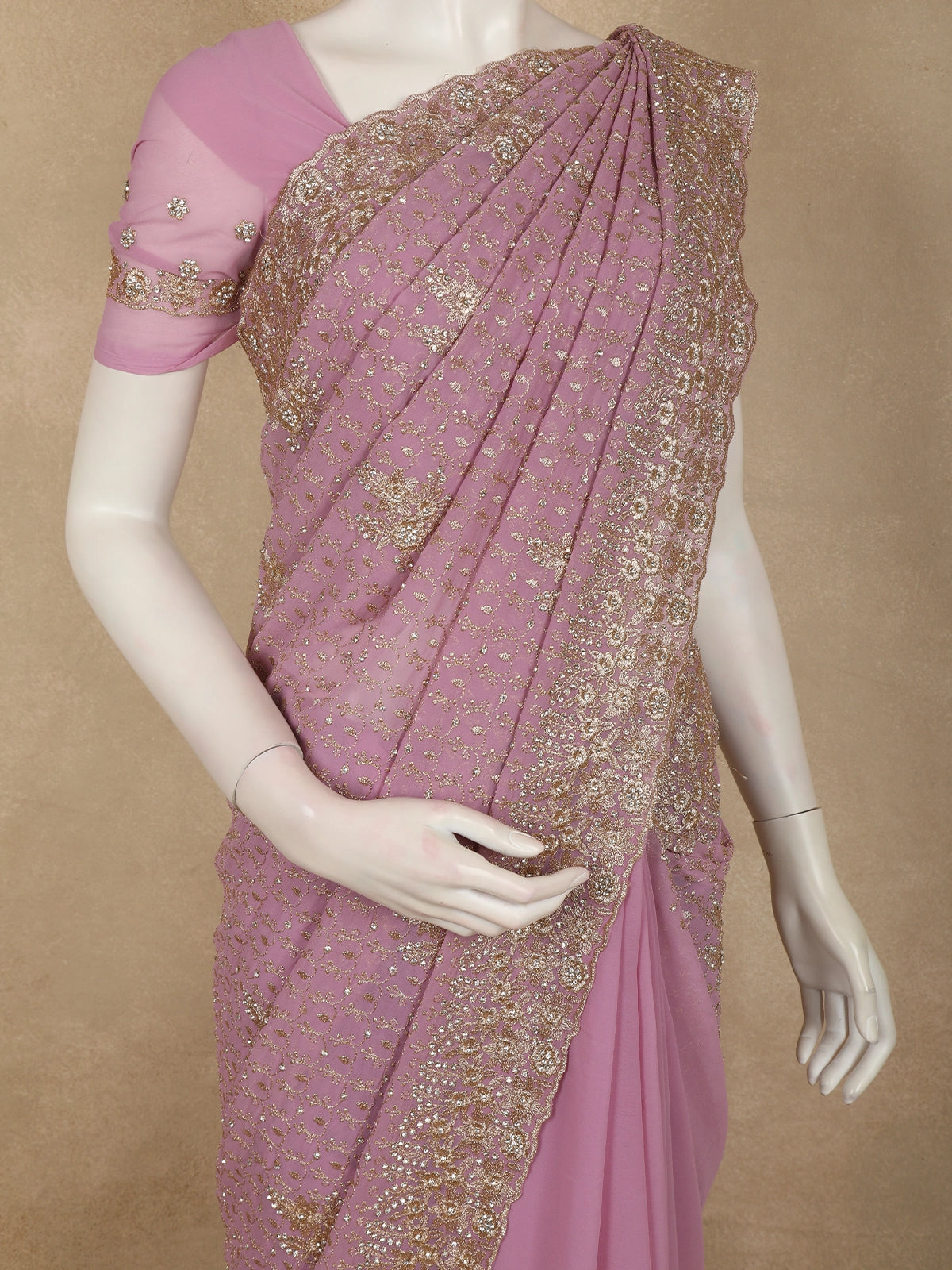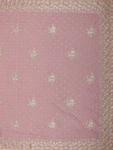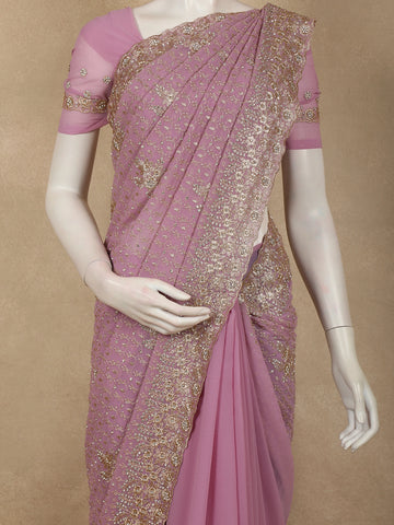 Soft Dusty Mauve Floral Zari Embroidered Design Georgette Designer Saree