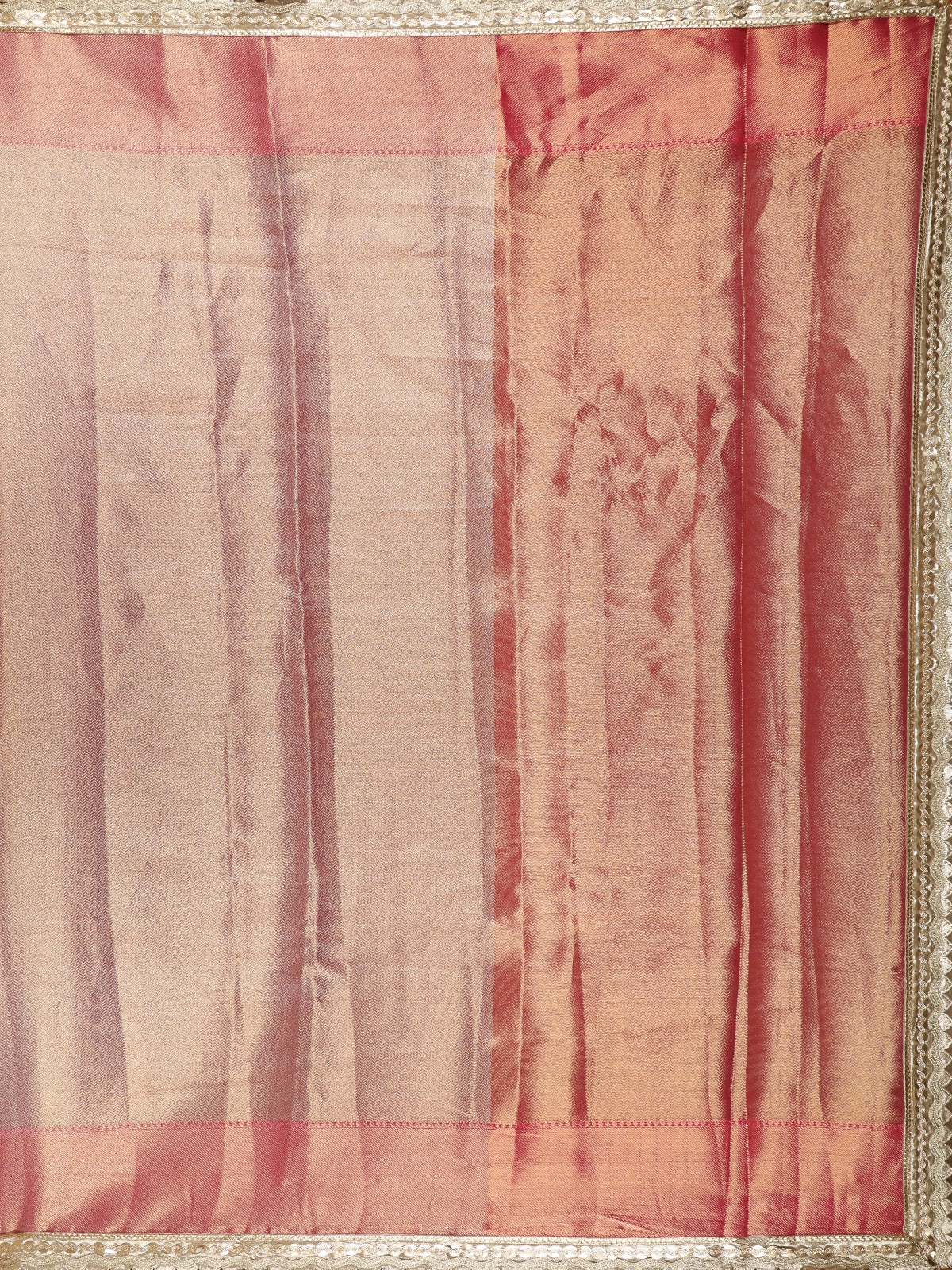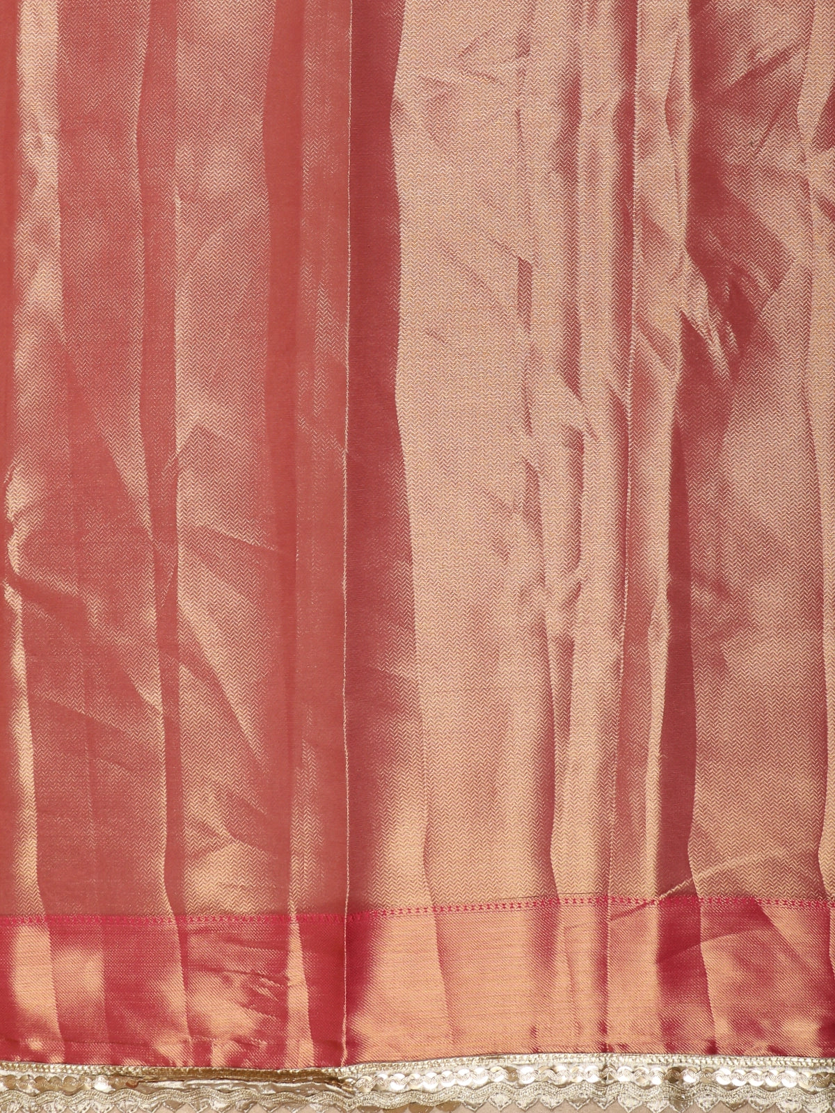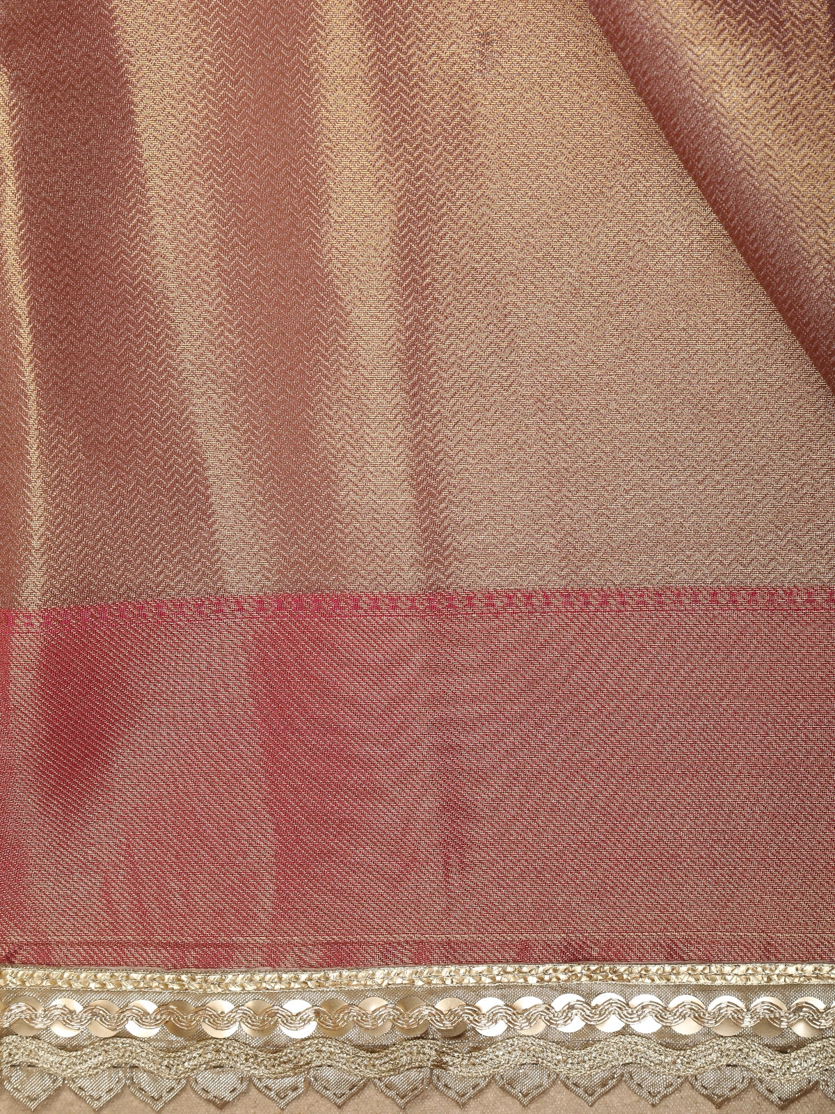 Soft Dusty Rose Copper Geometric Zari Woven Design Tissue Designer Saree with Sequins Border