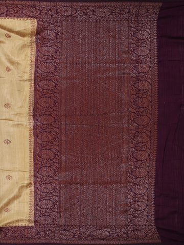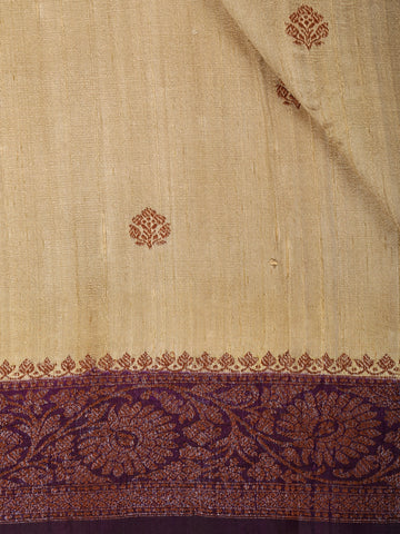 Soft Golden Beige Butta Woven Design Pure Tussar Saree with Contrast Border