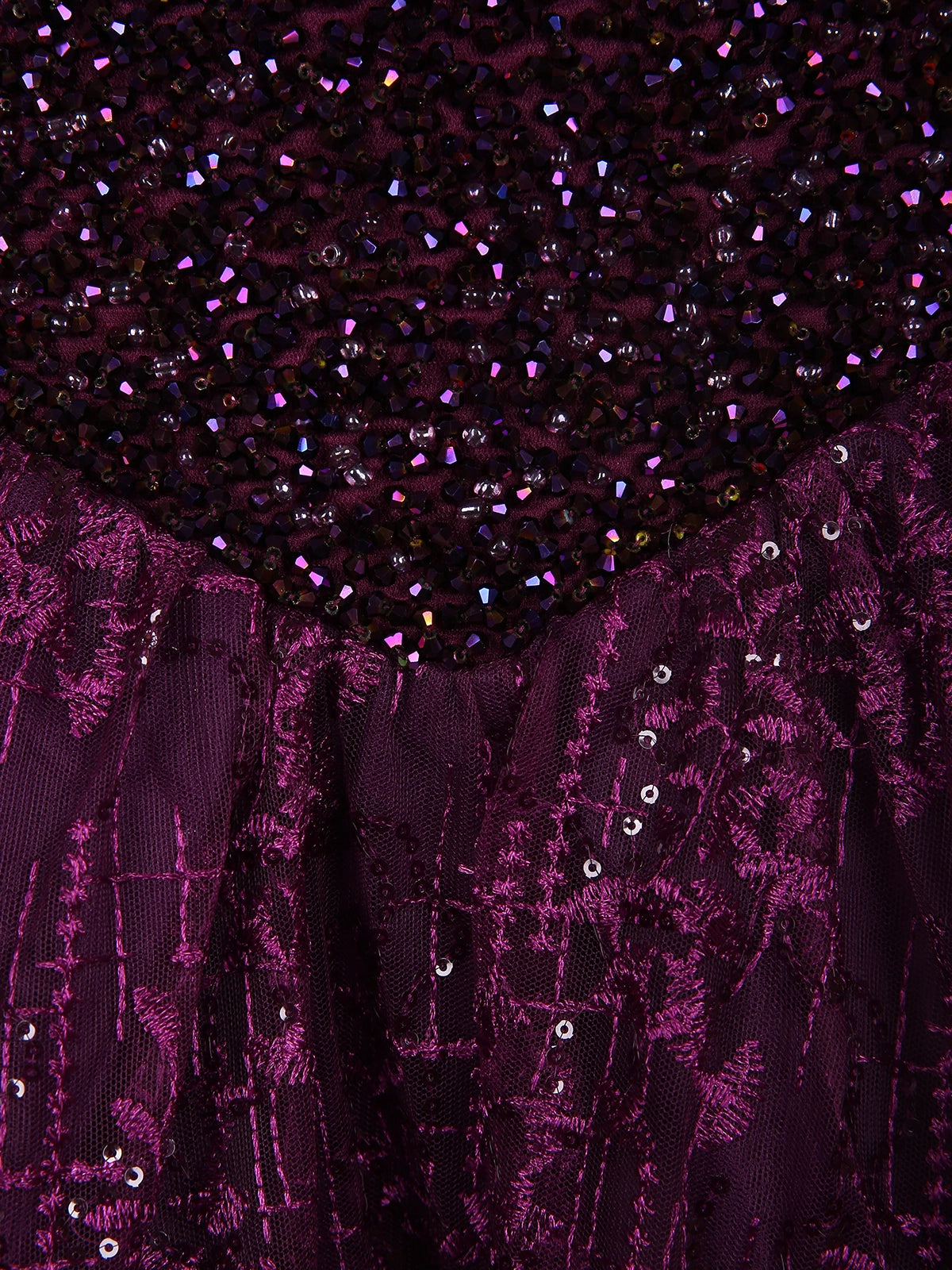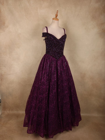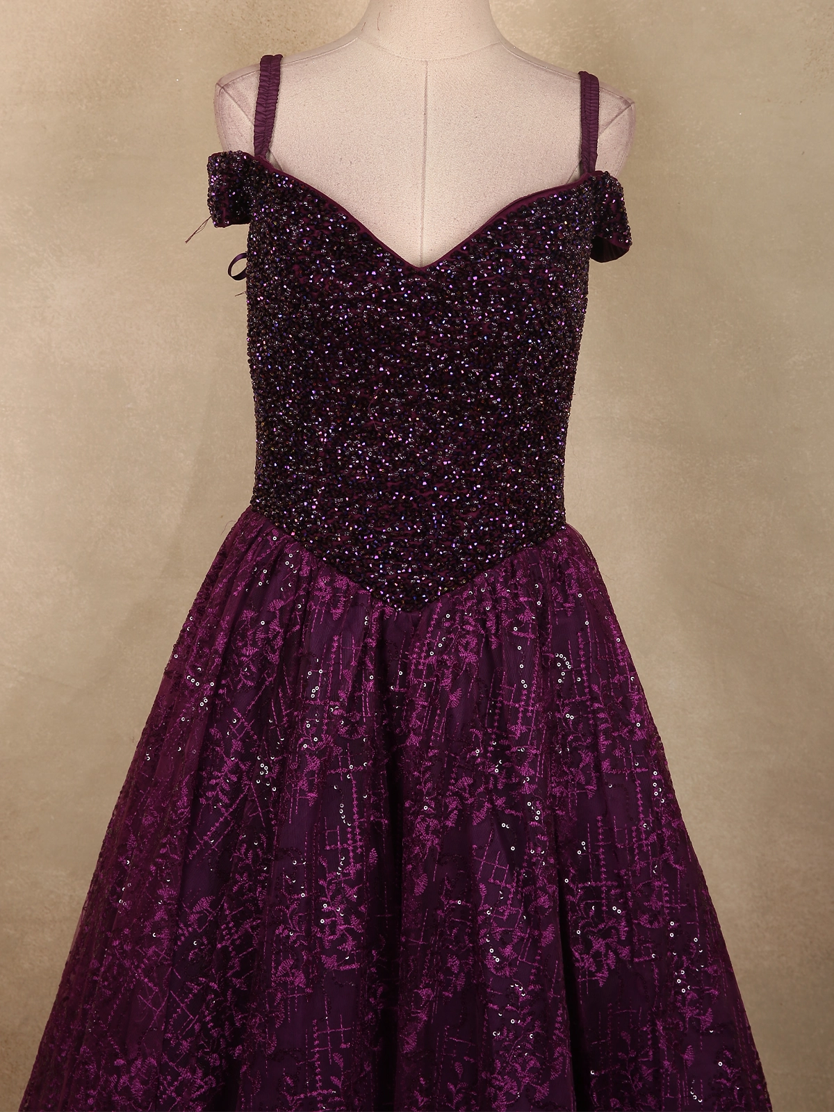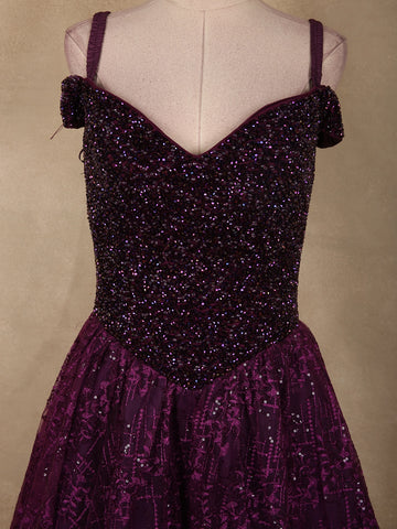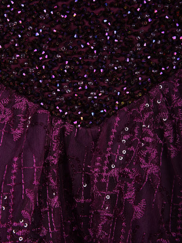 Deep Plum Purple Heavy Sequins and Beads Embroidered Design Net Gown