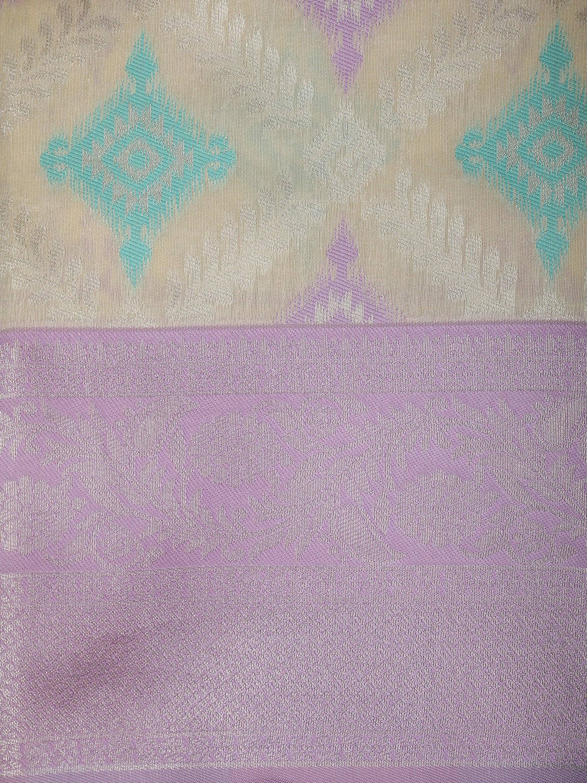 Soft Ivory Geometric Zari Woven Design Tissue Silk Saree with Contrast Zari Border