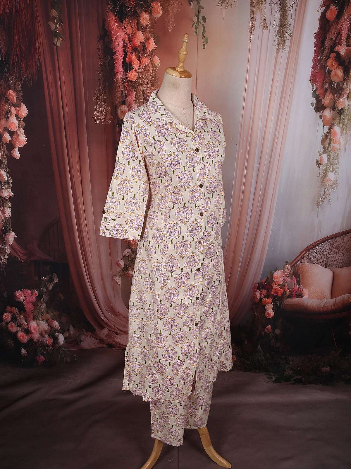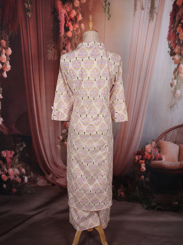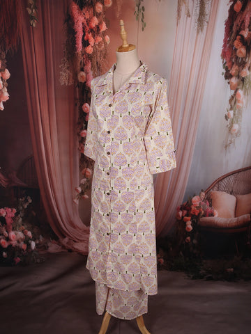 Paired with a matching printed palazzo, the set offers a relaxed yet polished finish, making it perfect for office wear, casual outings, and daytime gatherings. Crafted in breathable cotton fabric, this ensemble ensures all-day comfort without compromising on style.