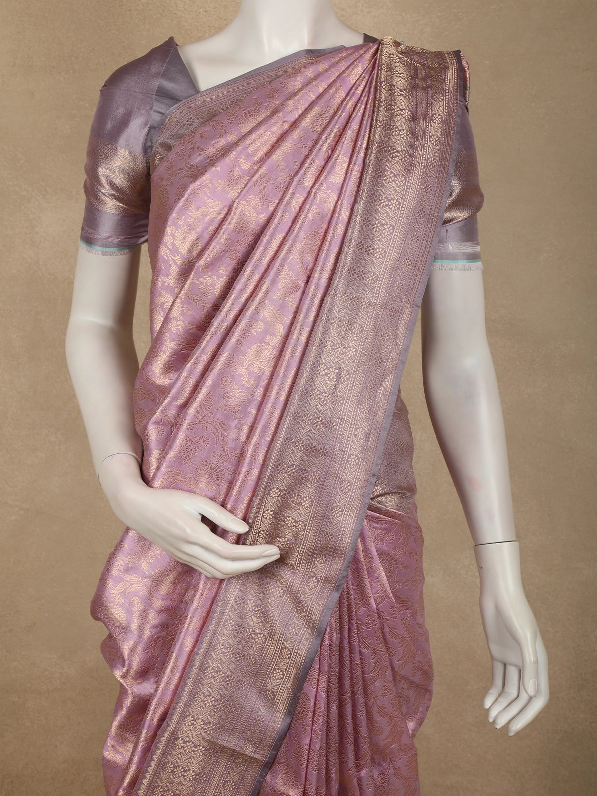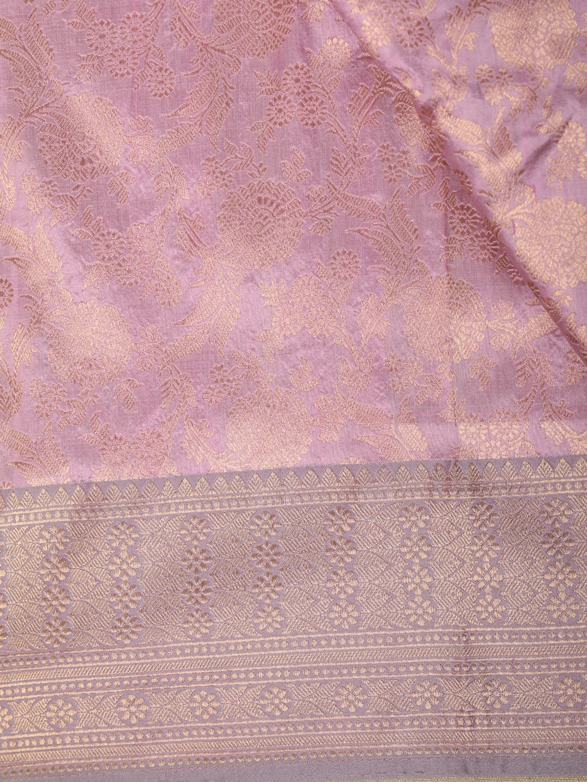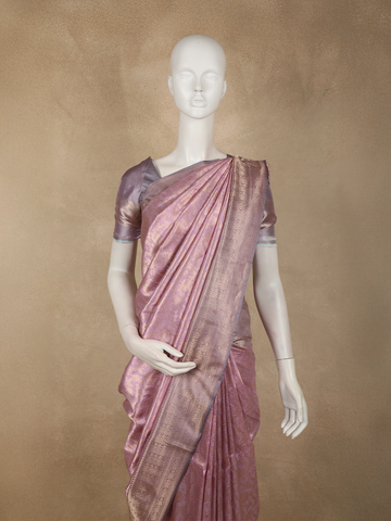 Soft Mauve Lavender Floral Zari Woven Design Pure Banarasi Silk Saree with Zari Border