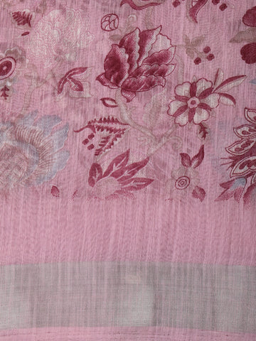Soft Mauve Pink Floral Printed Design Mixed Cotton Saree