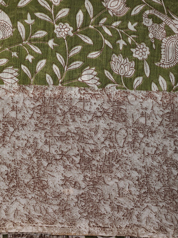 This Soft Olive Green Floral Printed Design Mixed Cotton Saree exudes an understated elegance rooted in nature-inspired aesthetics. The soothing olive green base is beautifully adorned with delicate off-white floral and bird motifs, lending the saree a serene, handcrafted appeal. Crafted in a breathable mixed cotton fabric, it offers a lightweight feel with a soft texture, ensuring all-day comfort and an easy, graceful drape.