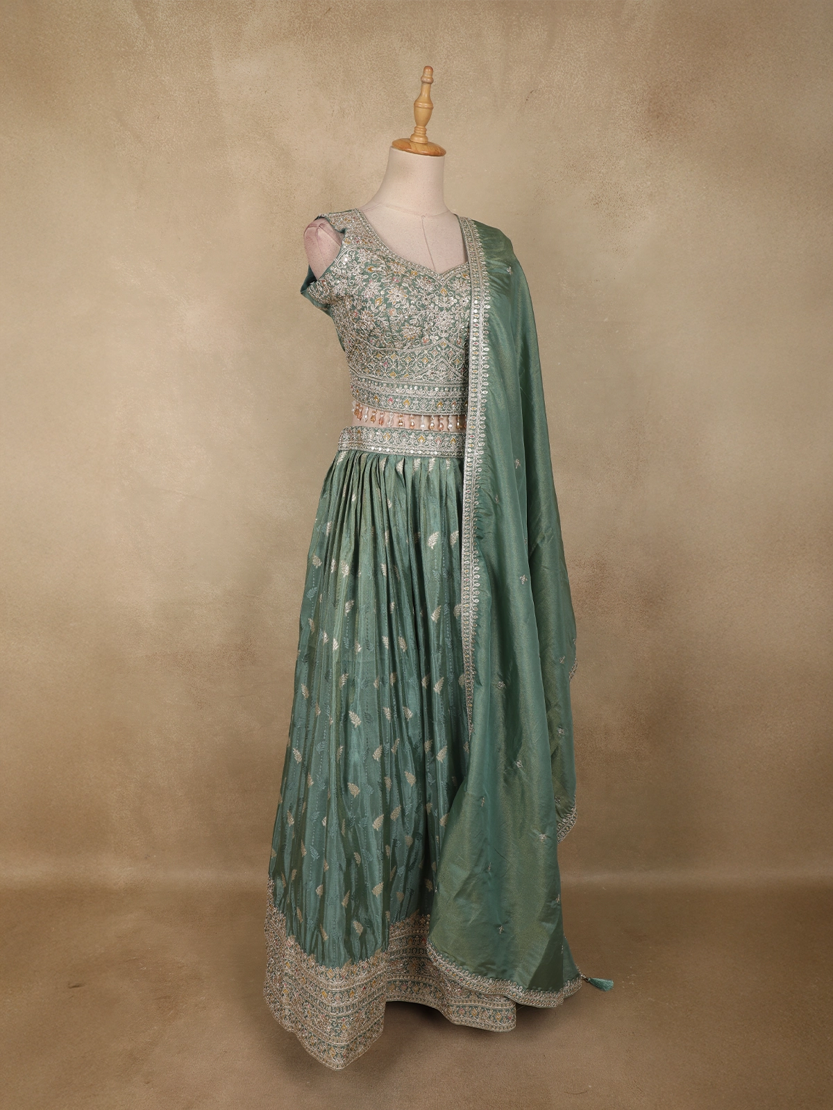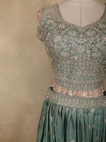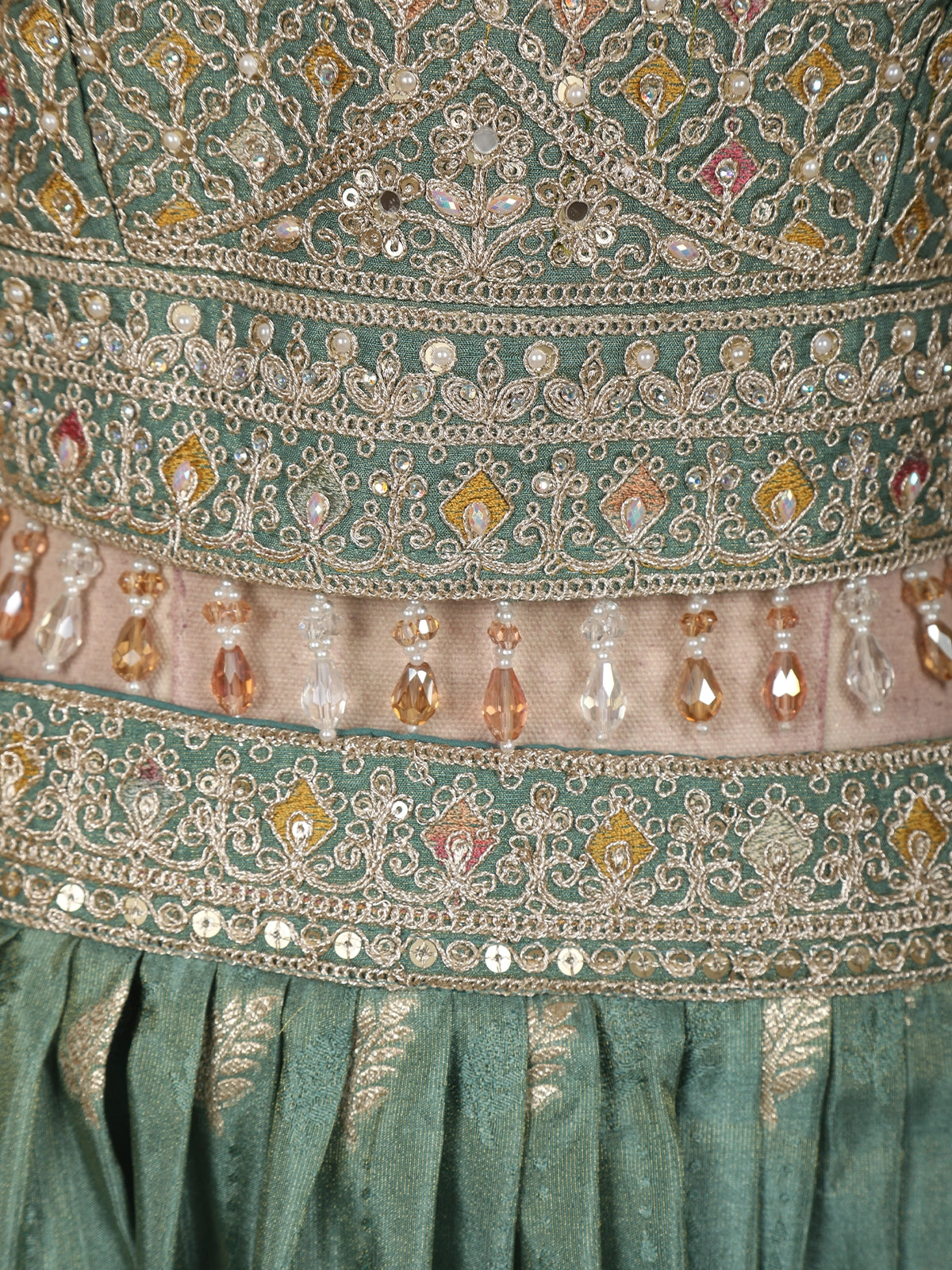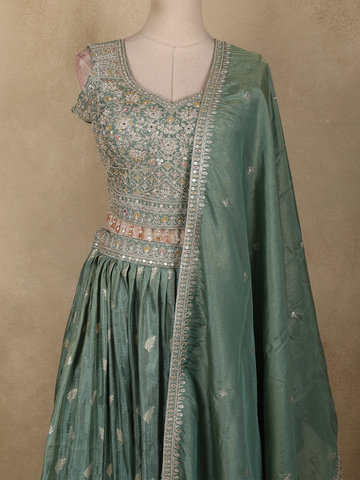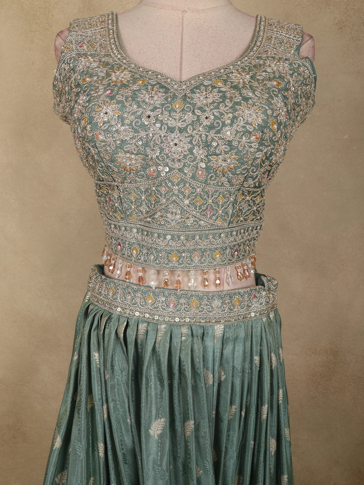 Soft Sage Green Beads Embroidered Design Banarasi Lehenga with Dupatta