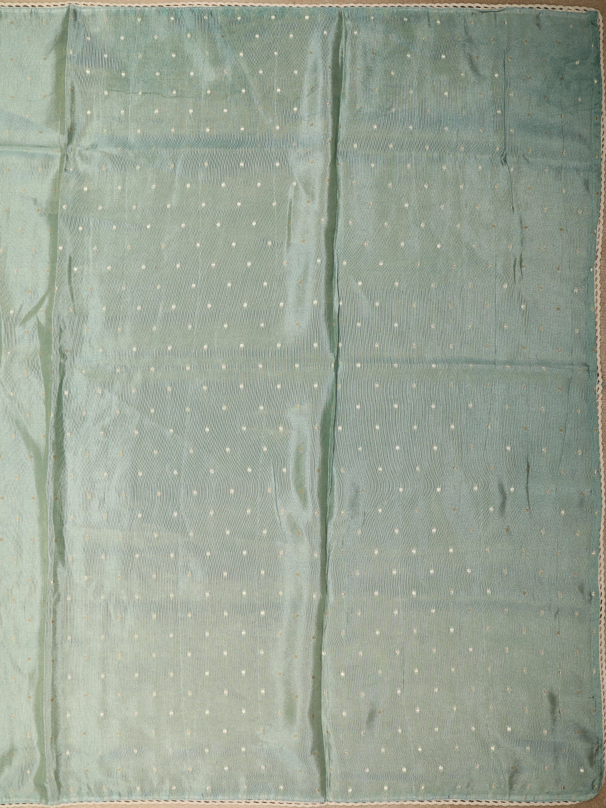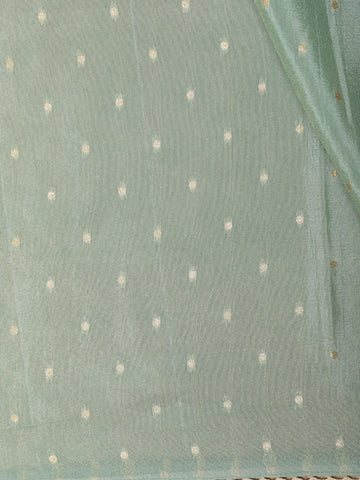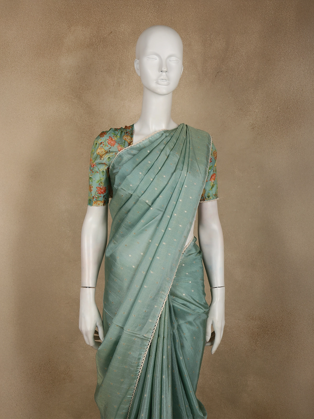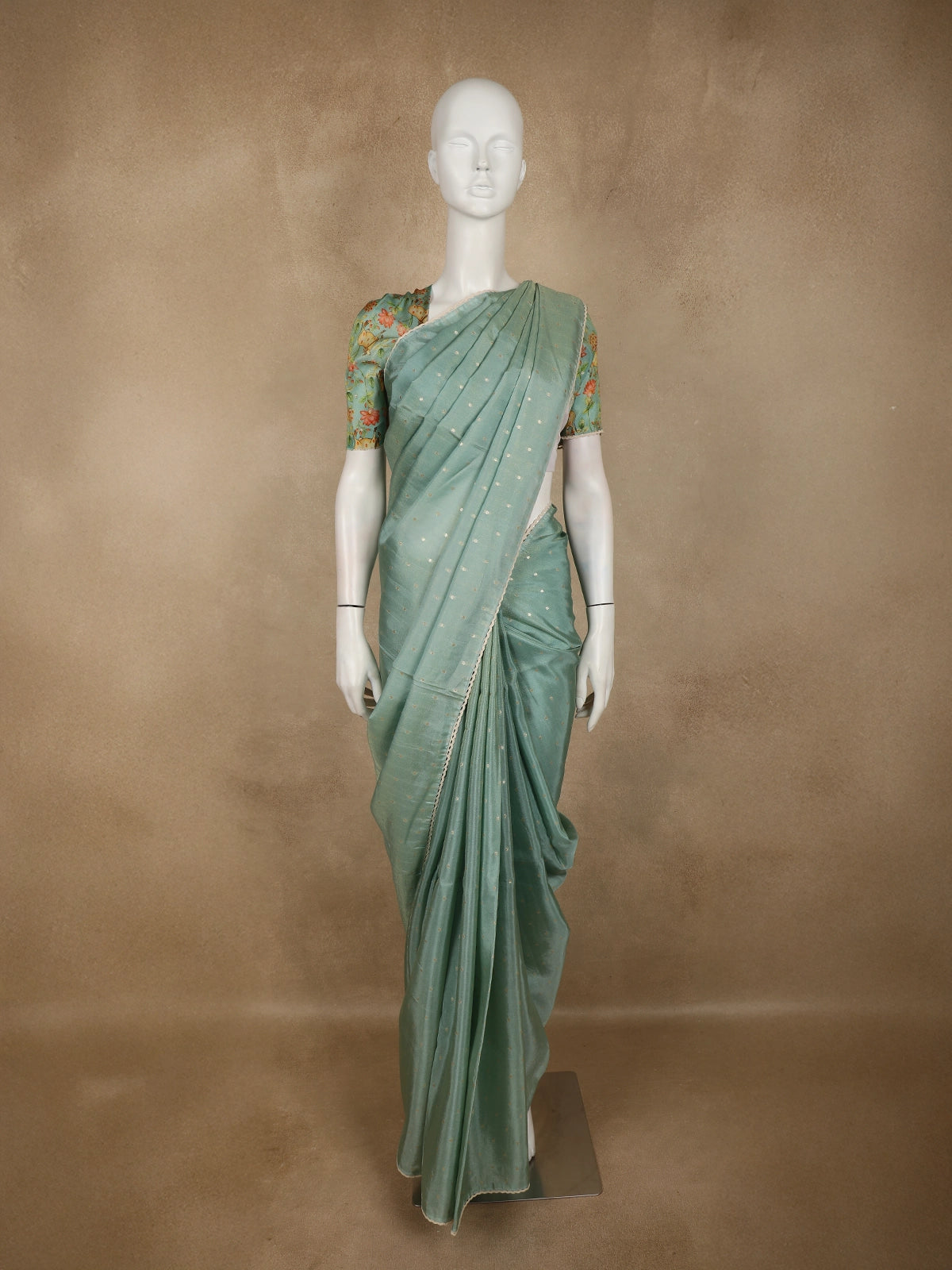 Soft Sage Green Butta Woven Design Soft Tissue Saree with Scalloped Border