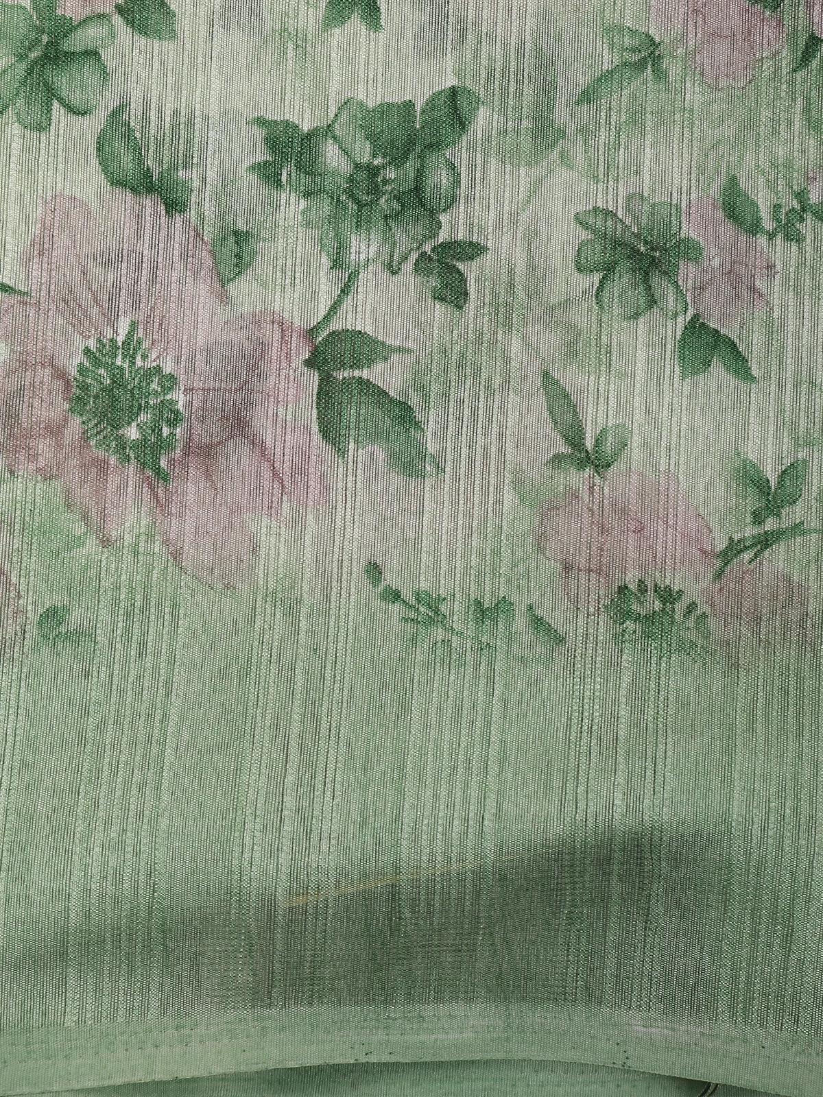 Soft sage Green Floral Printed Design Mixed Cotton Saree