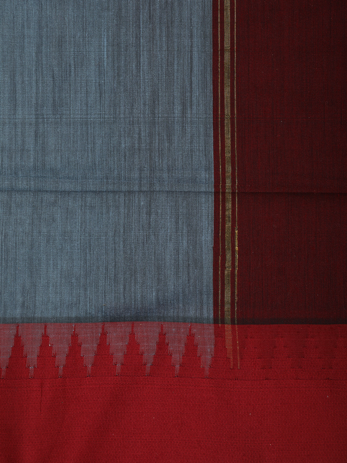 Steel Blue Solid Design Kalyani Cotton Saree with Contrast Temple Border