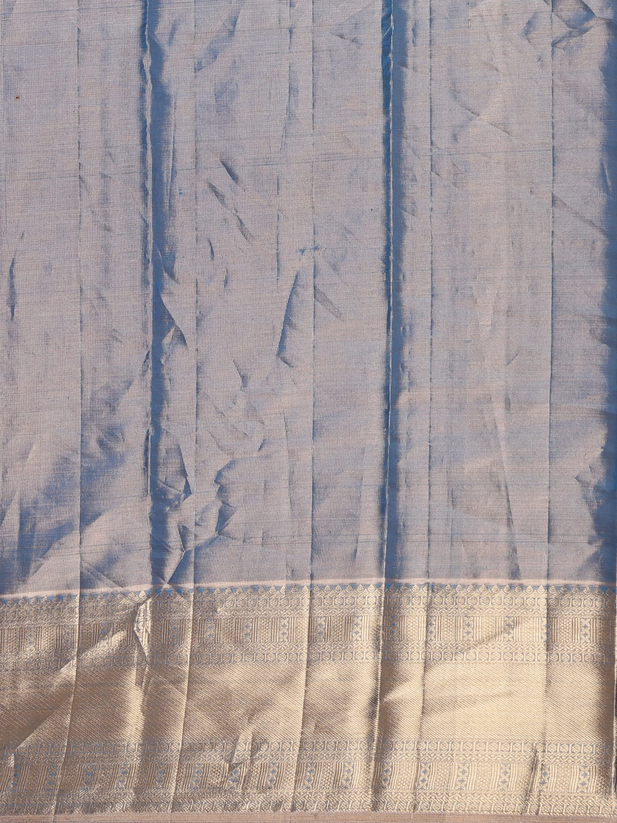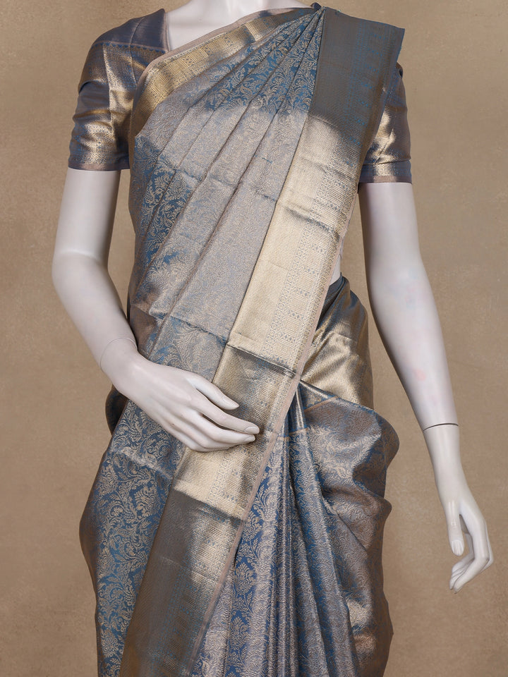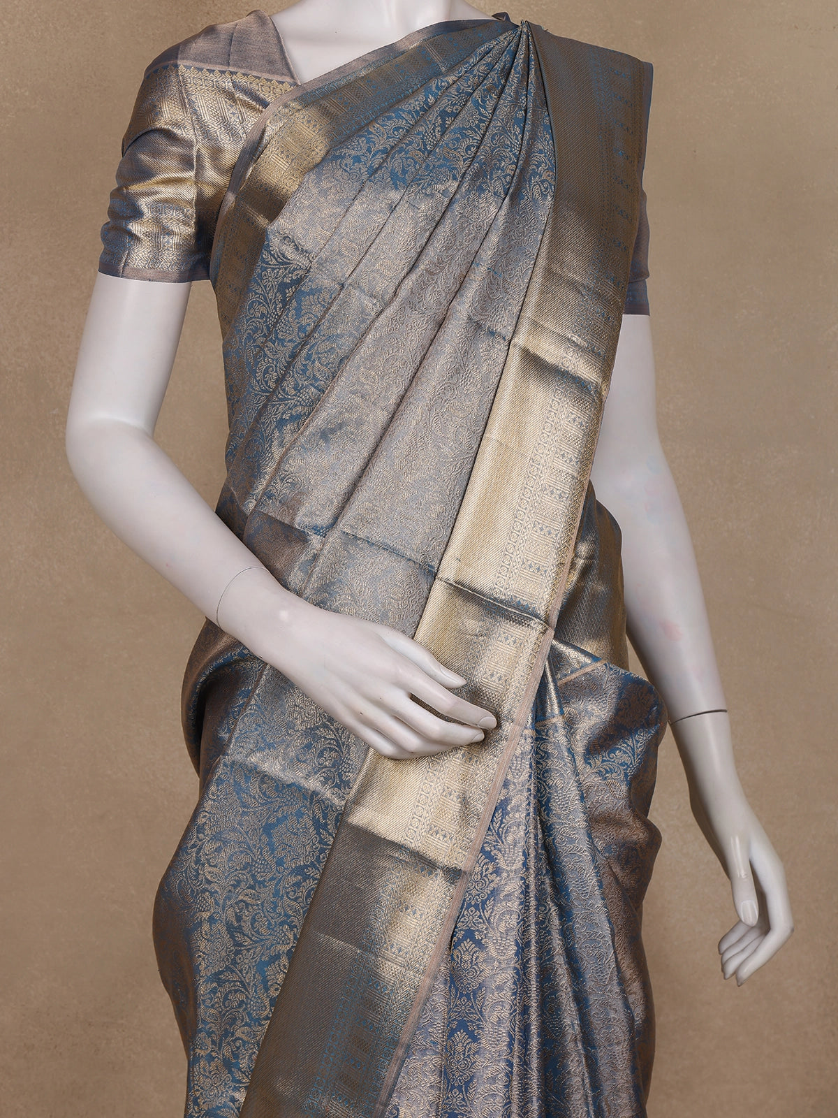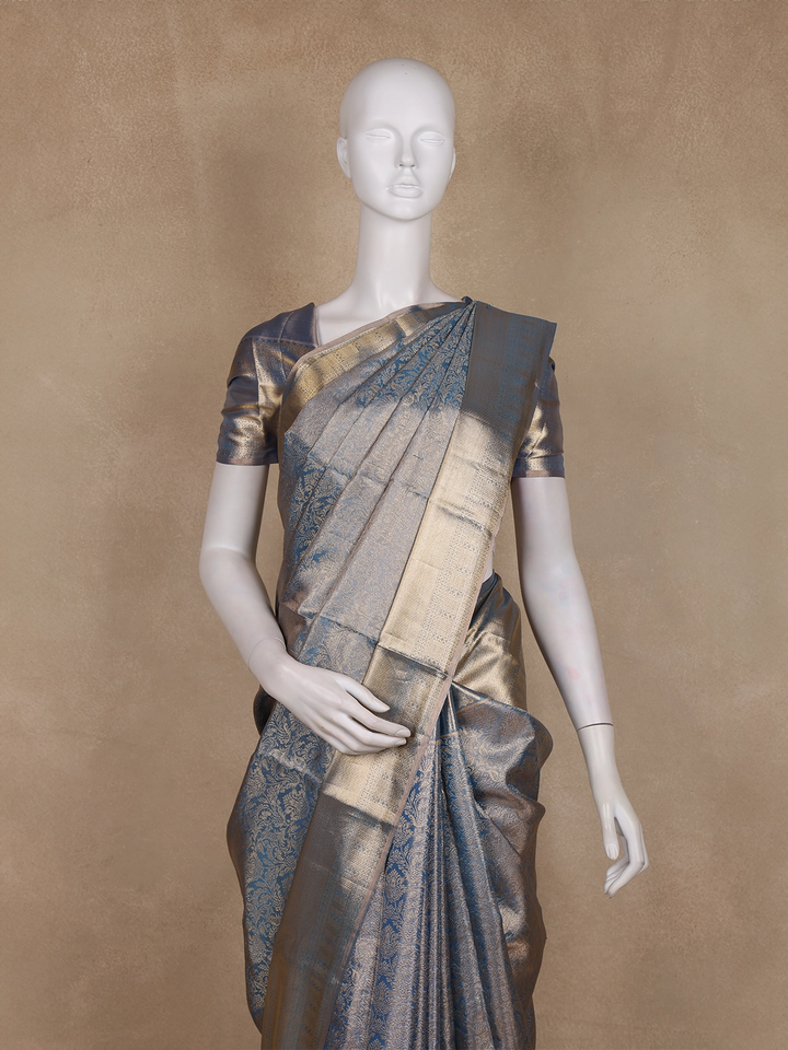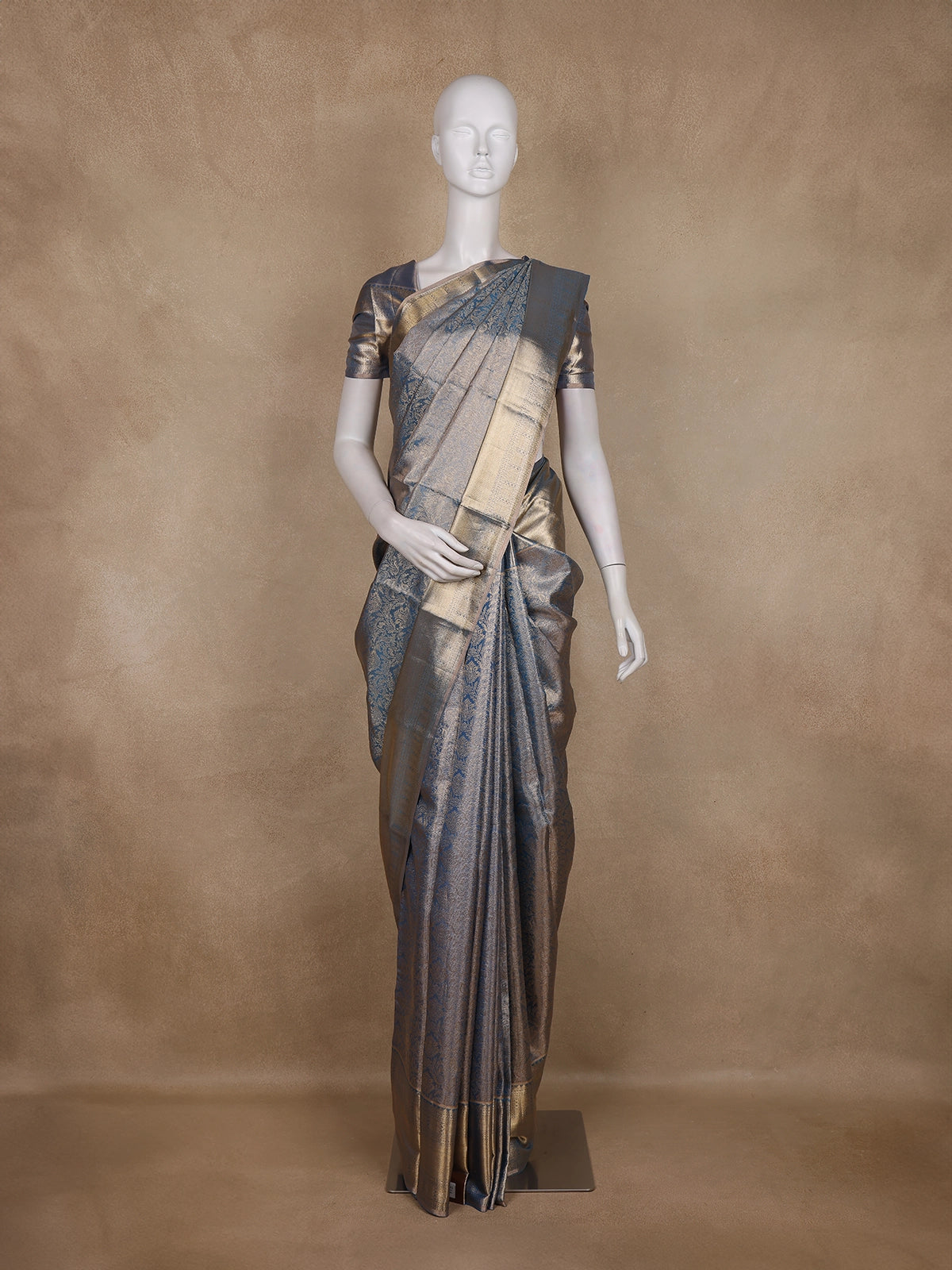 Steel Blue Zari Woven Design Pure Tissue Silk Saree with Rich Zari Border