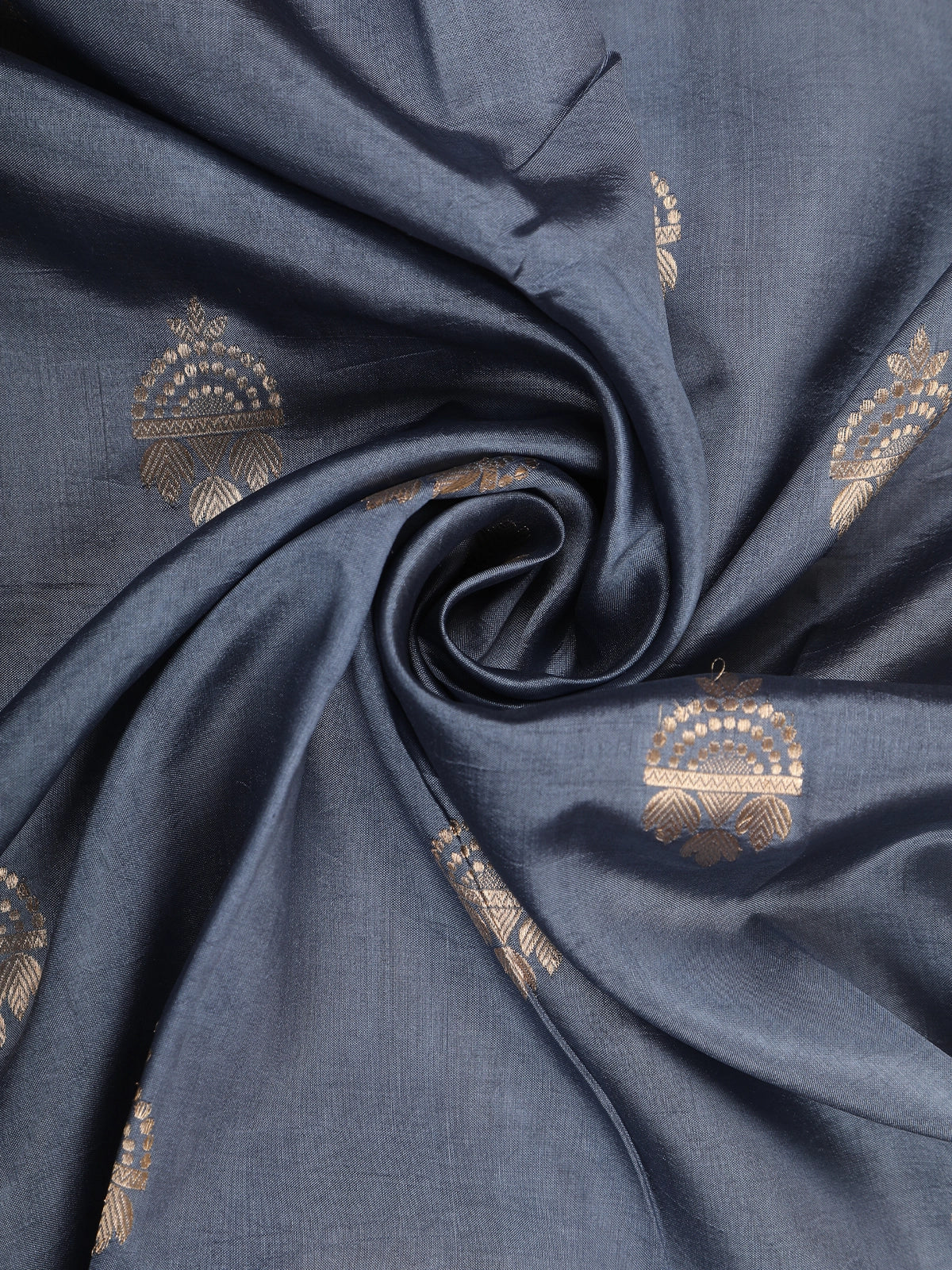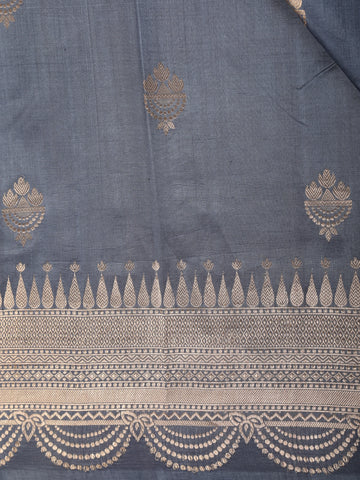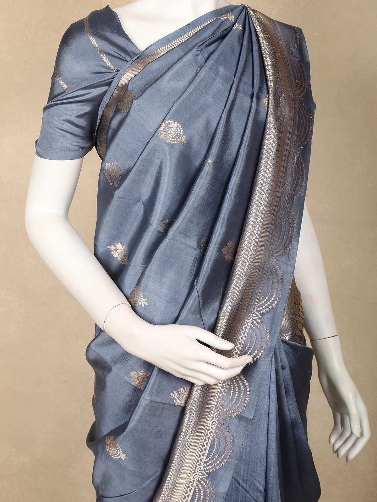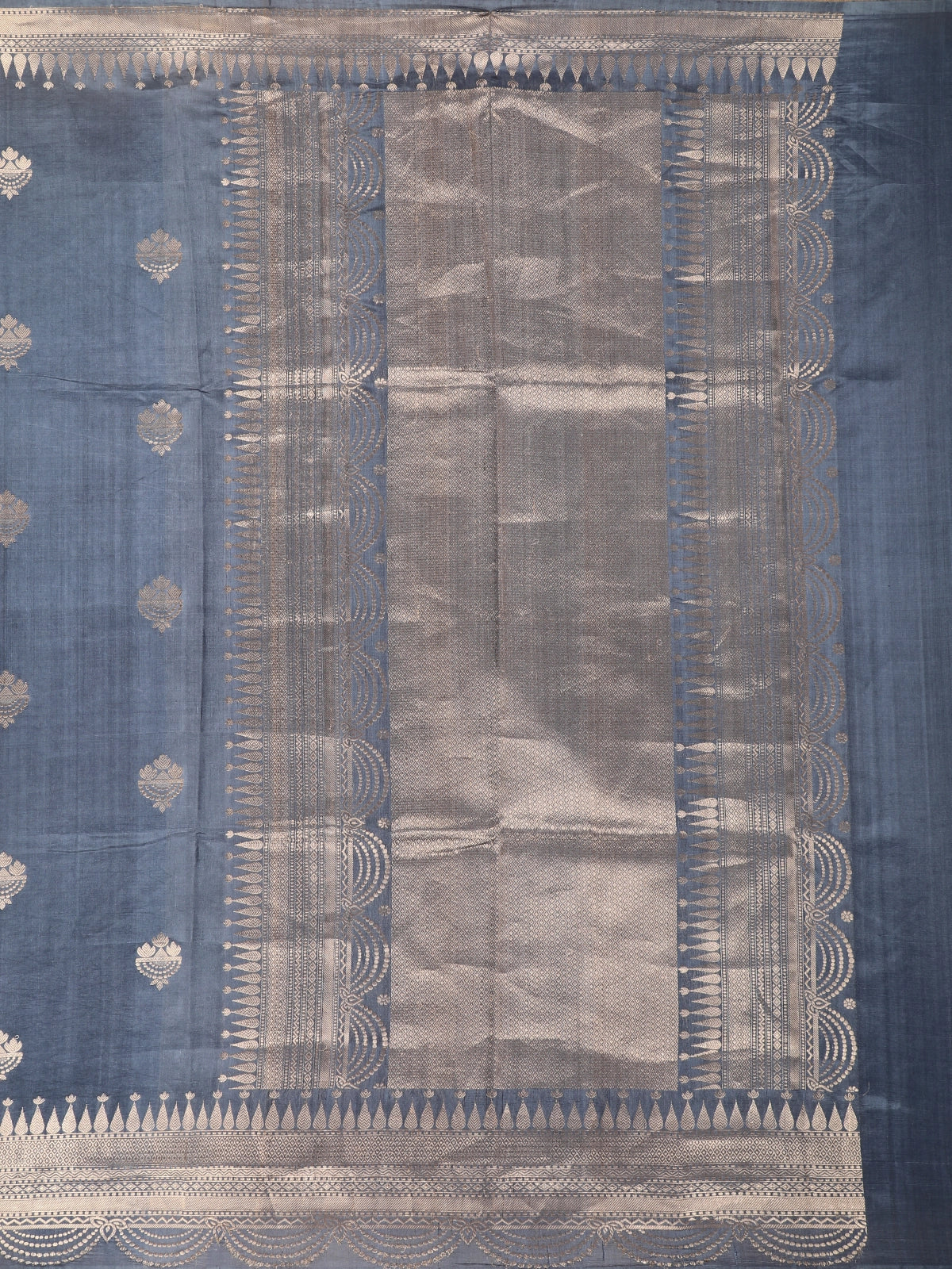 Steel Grey Butta Zari Woven Design Pure Banarasi Saree with Silver Zari Border