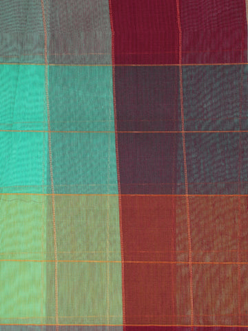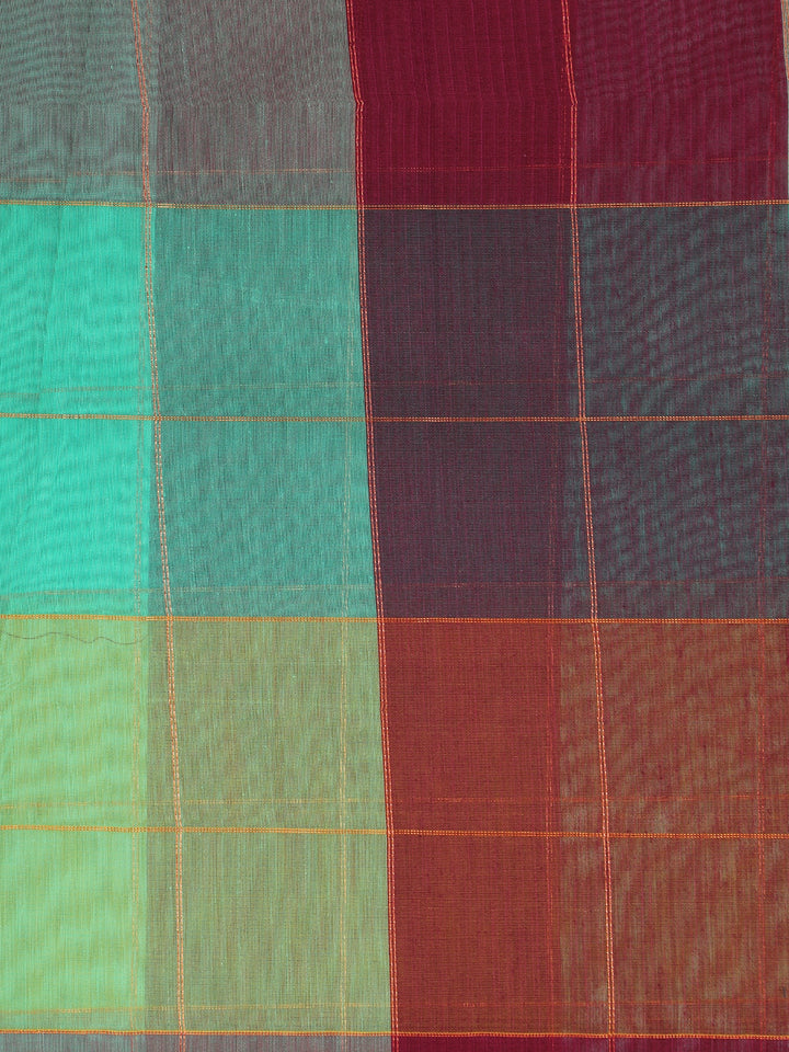 Teal and Maroon Checked Design Cotton Saree with Contrast Border