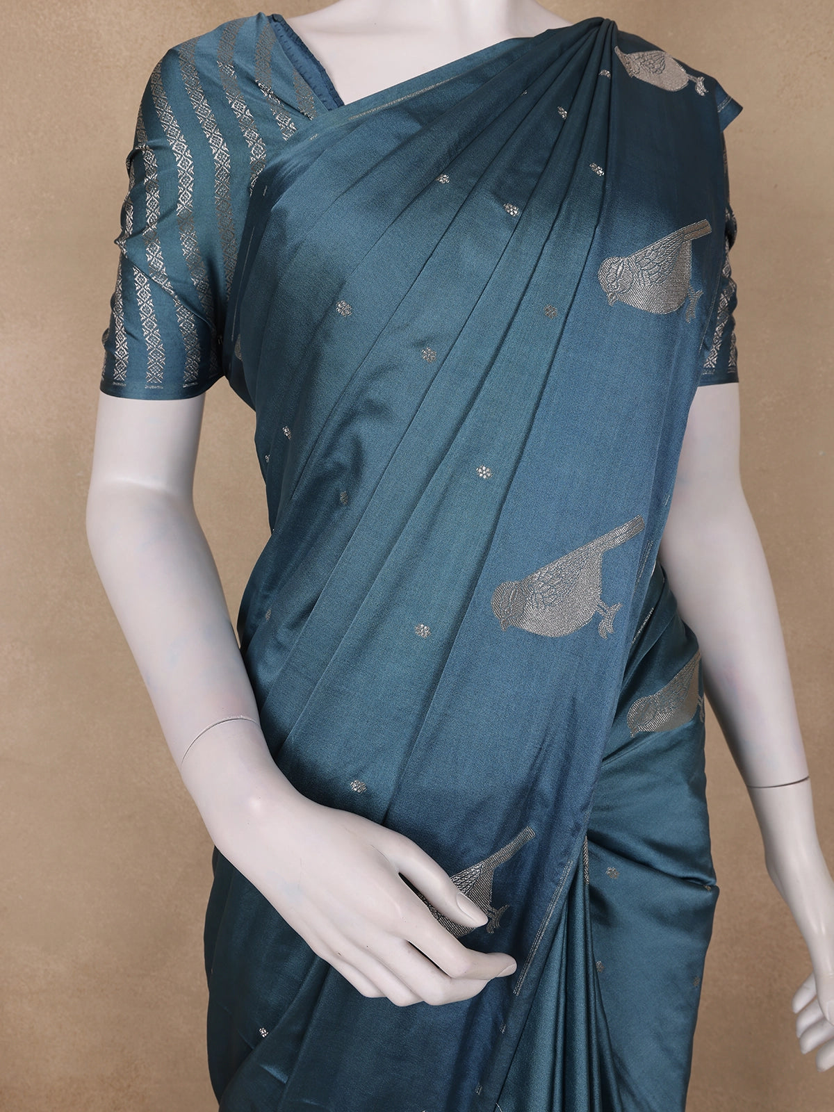 Teal Blue Butta Woven Design Banarasi Silk Saree