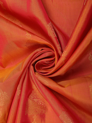 Celebrate timeless grandeur with this exquisite Orange and Pink Dual-Tone Kanchipuram Silk Saree, a masterpiece that blends traditional weaving heritage with vibrant festive elegance. Crafted from pure Kanchipuram silk, the saree showcases a luxurious sheen and structured drape that enhances your silhouette with every step.