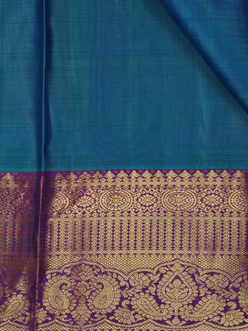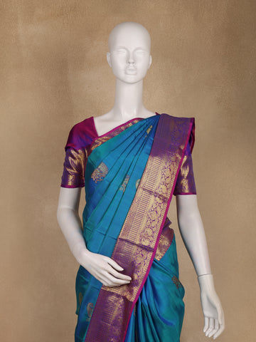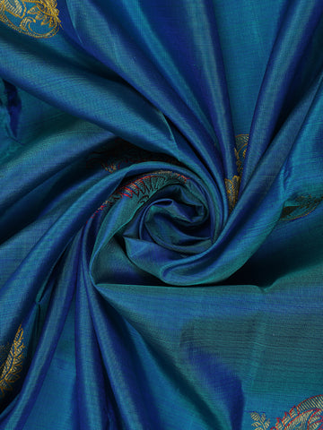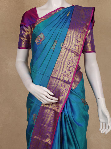 Teal Blue Butta Woven Design Pure Kanchipuram Silk Saree