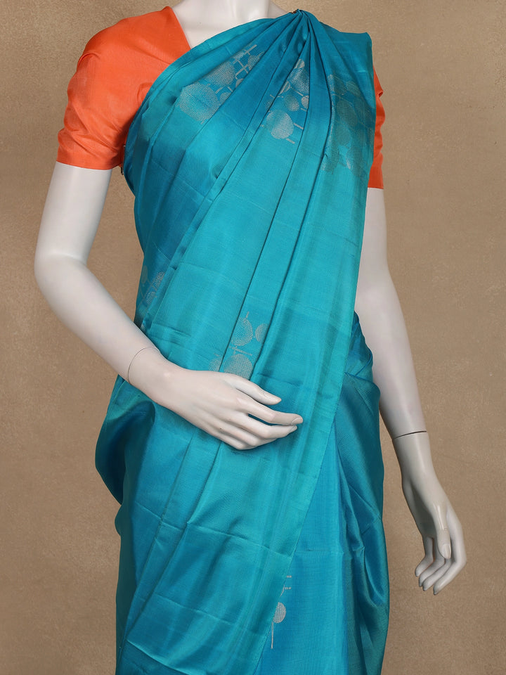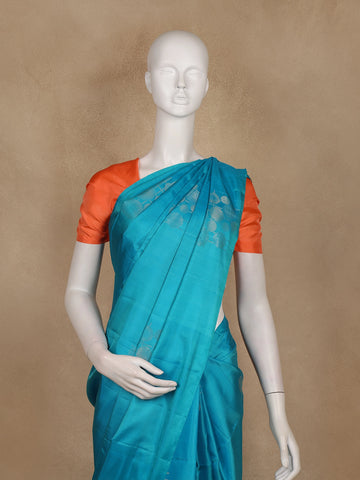 Bring a touch of elegance and vibrance to your wardrobe with this Teal Blue and Orange Soft Silk Saree. The lustrous silk texture flows gracefully, adorned with subtle zari buttas that reflect light beautifully. The bright orange pallu and blouse add a lively contrast, symbolizing festive cheer and tradition. Ideal for weddings, temple visits, or festive gatherings, this saree blends sophistication with vivid charm — a statement piece for every celebration.