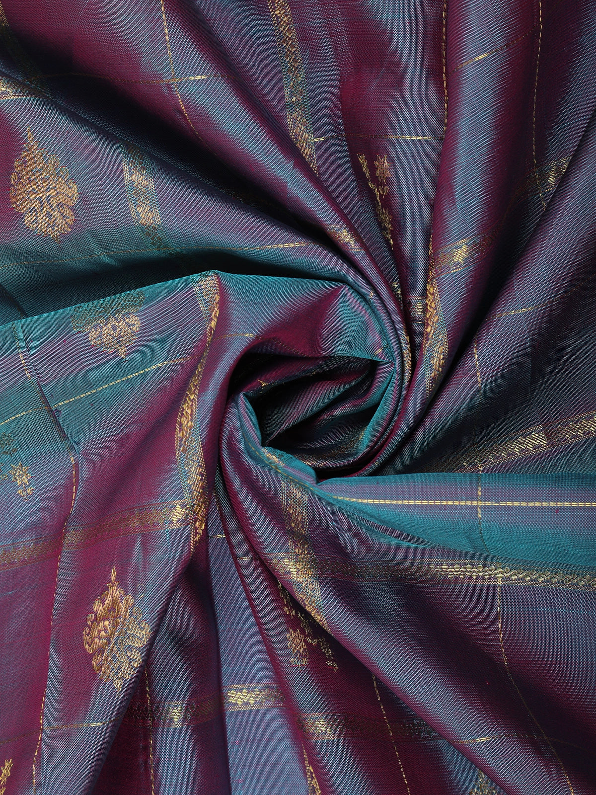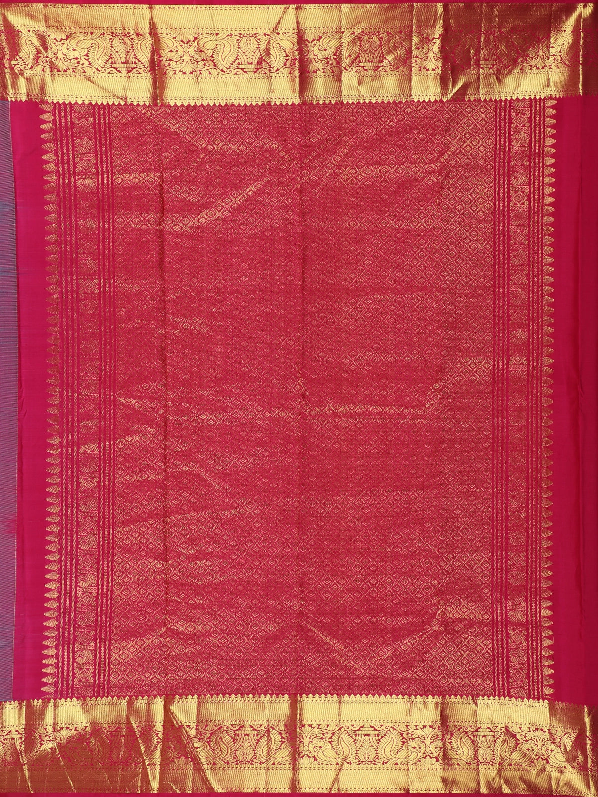 The combination of teal blue, maroon red, and antique gold creates a timeless South Indian aesthetic, making this saree an ideal choice for weddings, festive occasions, temple ceremonies, and traditional celebrations where classic elegance is desired.
