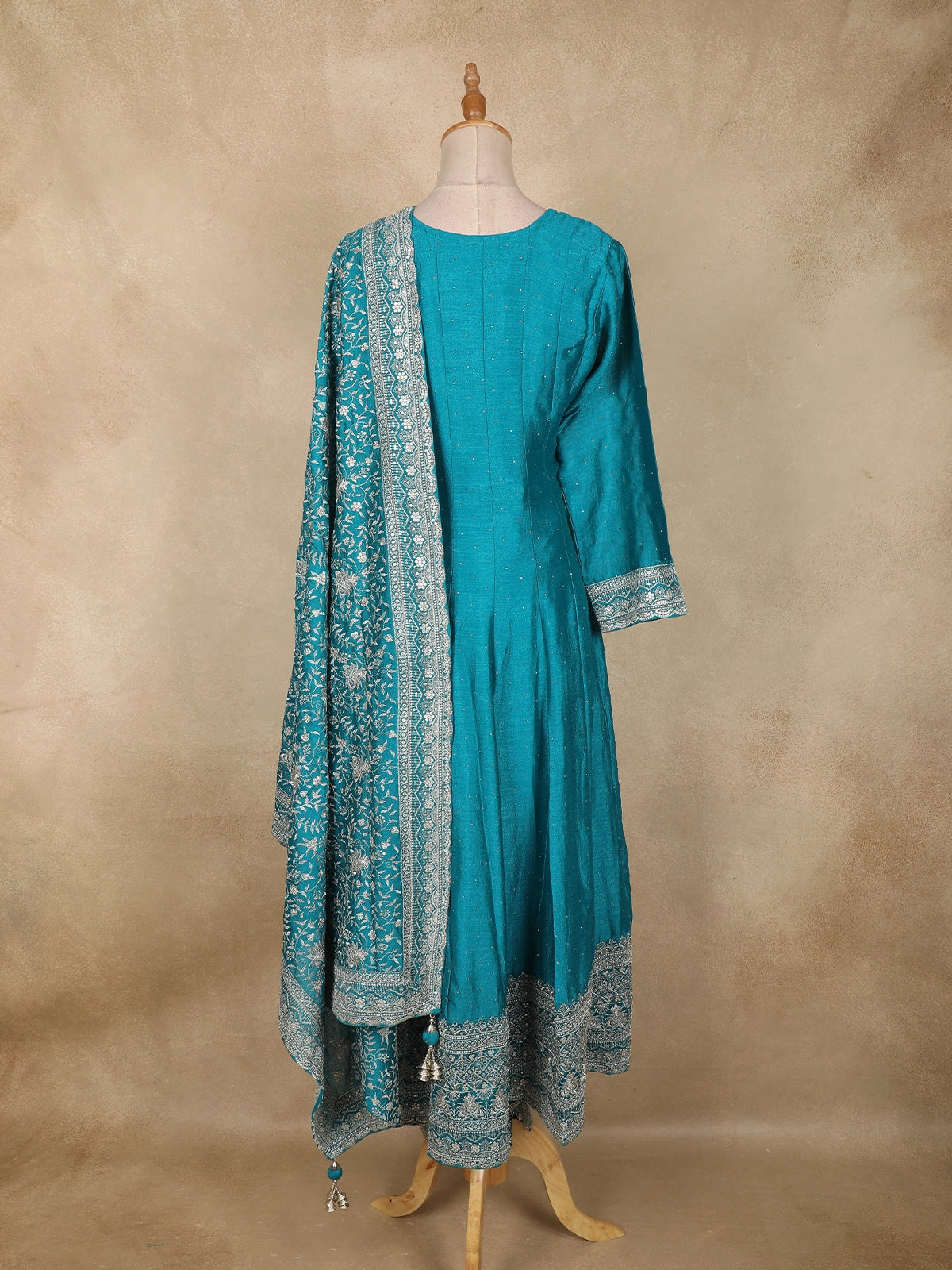 Teal Blue Embroidered Georgette Anarkali Salwar Suit with Dupatta
