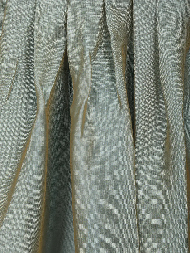 The voluminous lehenga features a subtle ombré shading effect that flows beautifully with every step, adding depth and sophistication to the ensemble. Paired with a matching teal dupatta, finished with a delicate embroidered lace border, this set completes the look with refined grace.