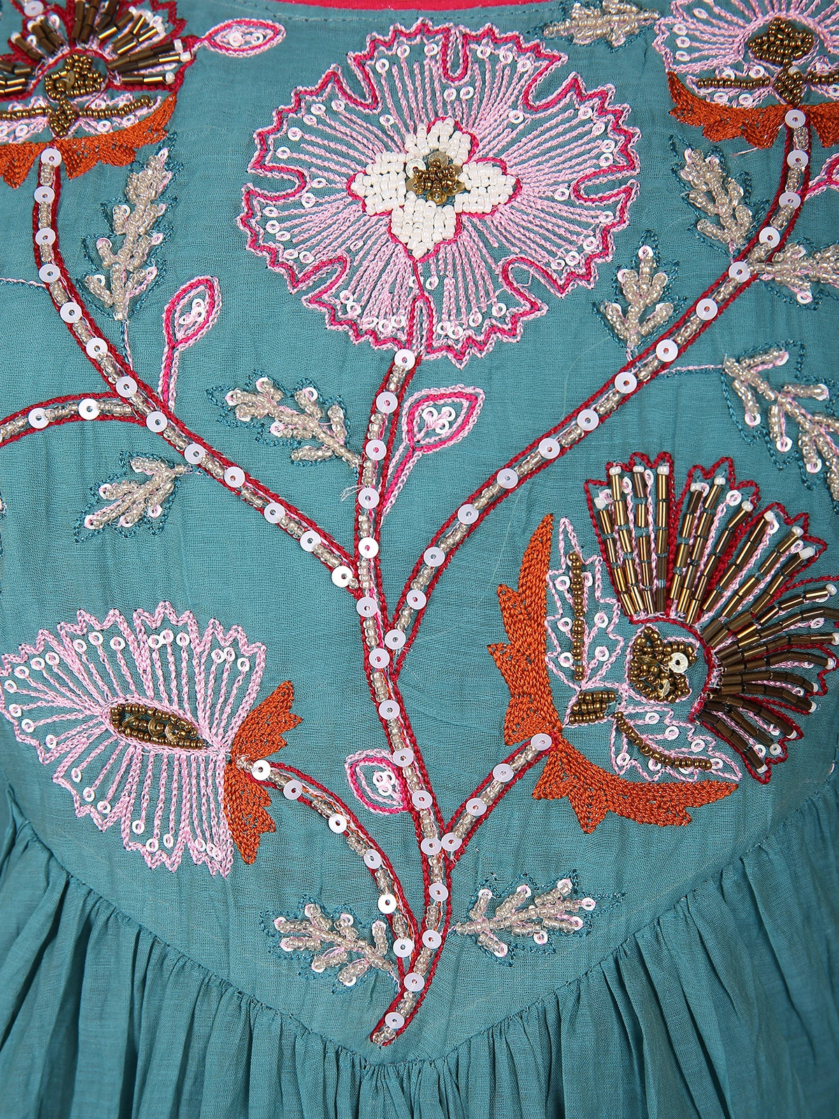 Teal Blue Floral Embroidered Cotton Salwar with Dupatta